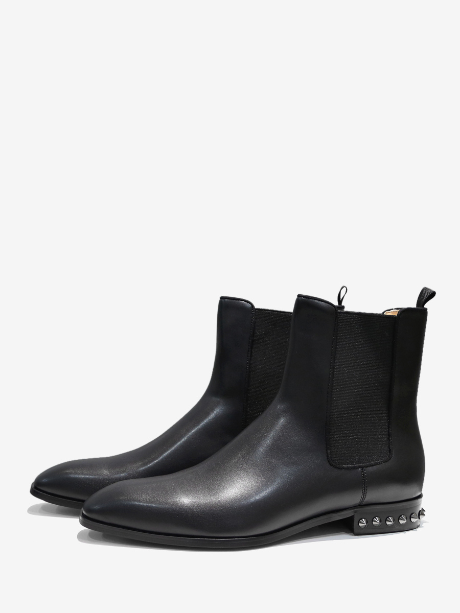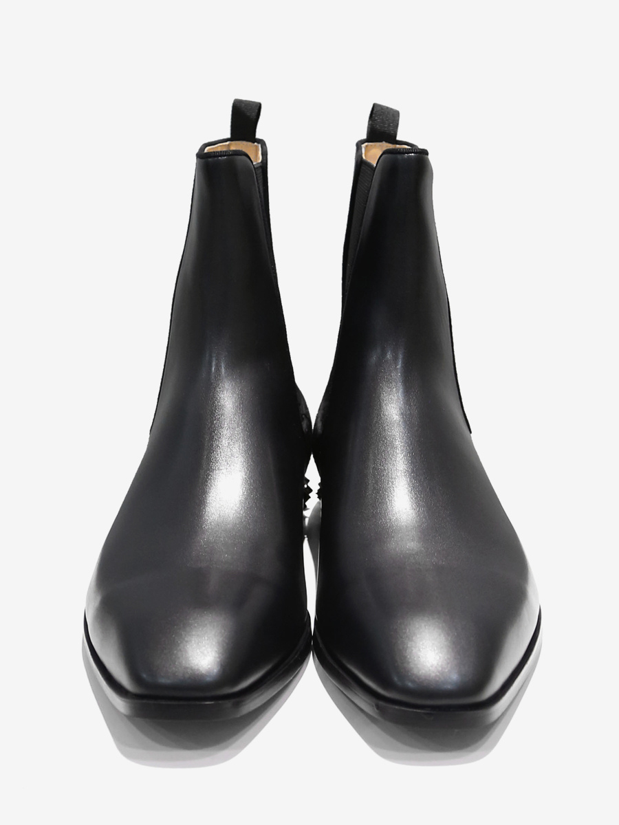 メンズ チェルシーブーツ ブラック スクエアトゥ アンクル プロム スパイクヒールブーツ