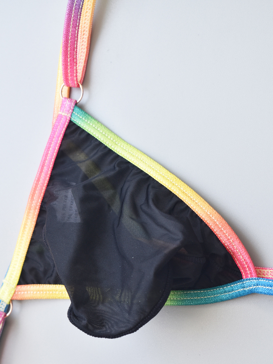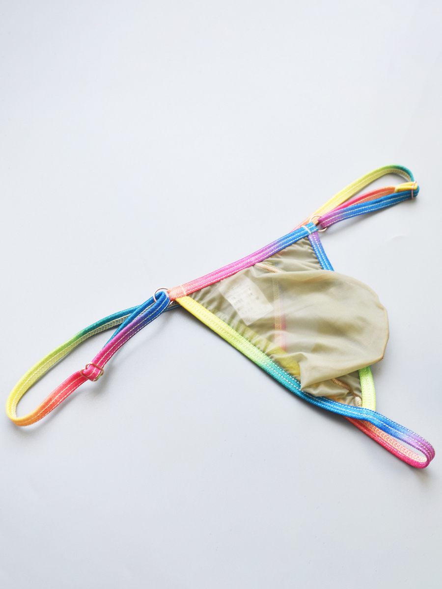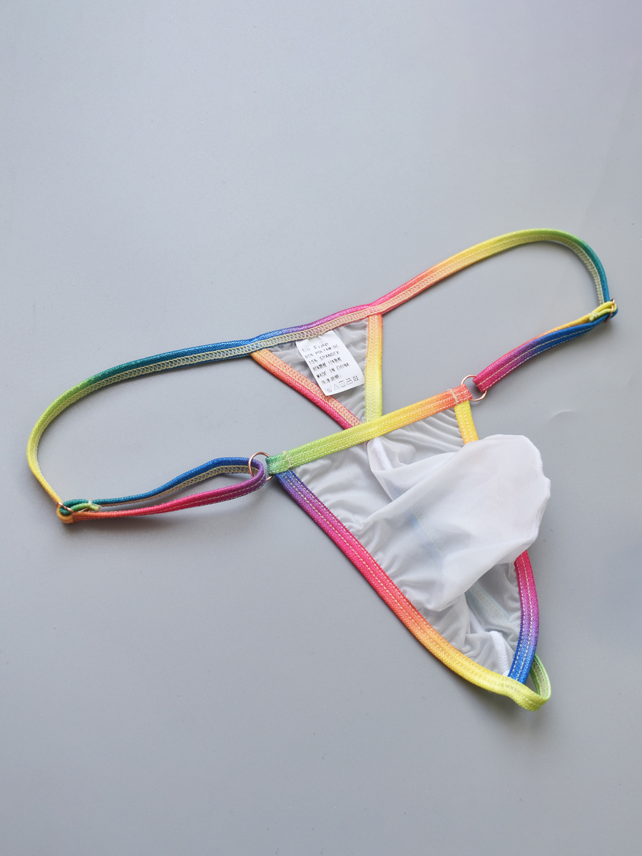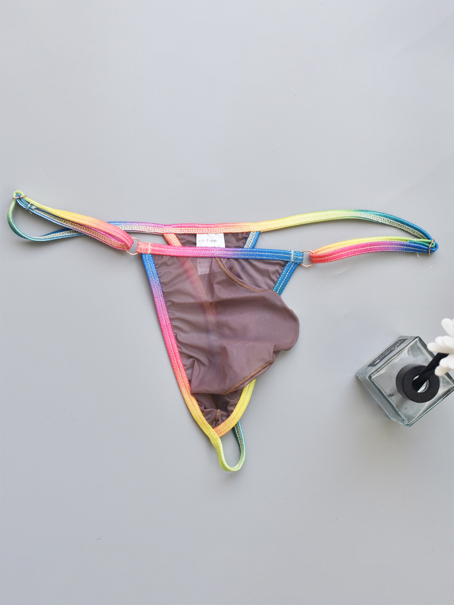 メンズ Gストリング レインボー ウエストバンド シースルー メッシュ ソング アンダーウェア