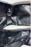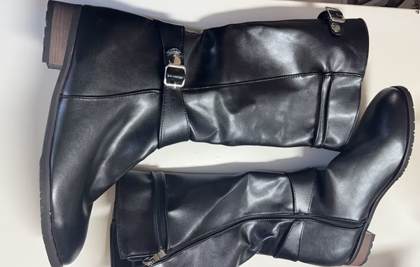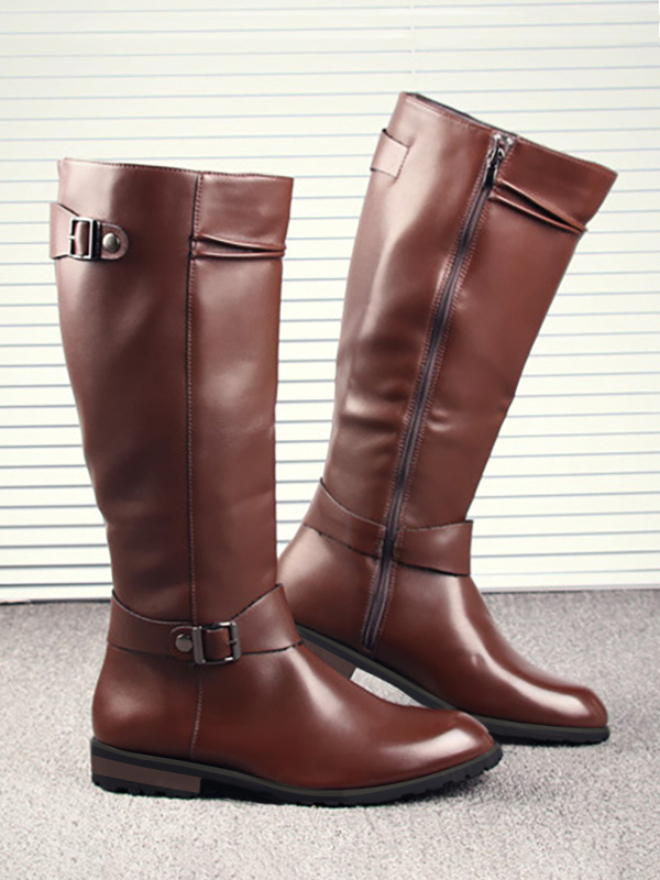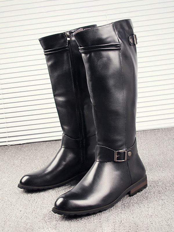 メンズ 乗馬ブーツ ブラック PU ラウンドトゥ バックルディテール ミッドカーフブーツ