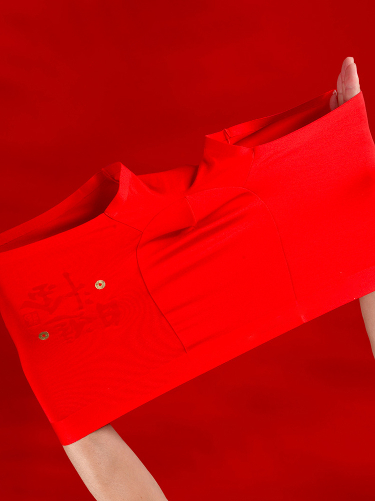 メンズ シームレス レッド ボクサーブリーフ プリント ミッドライズ 3枚組トランクス