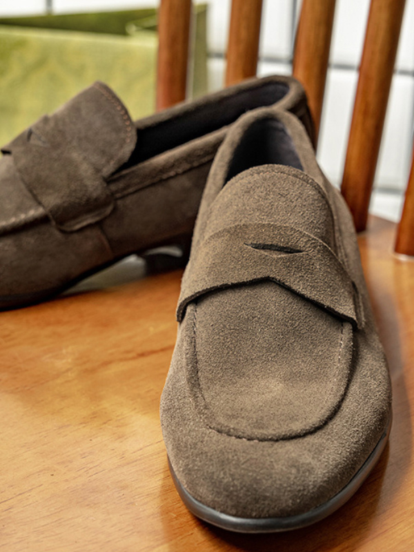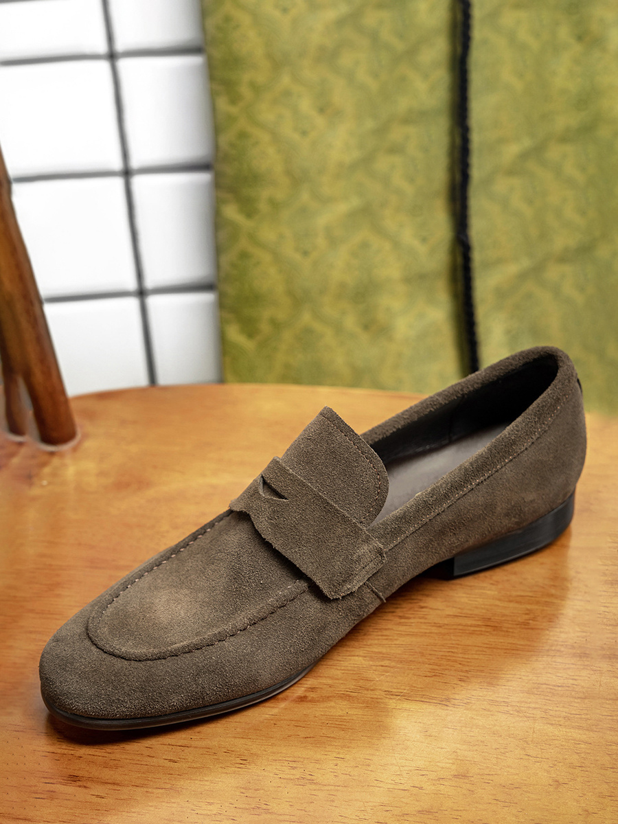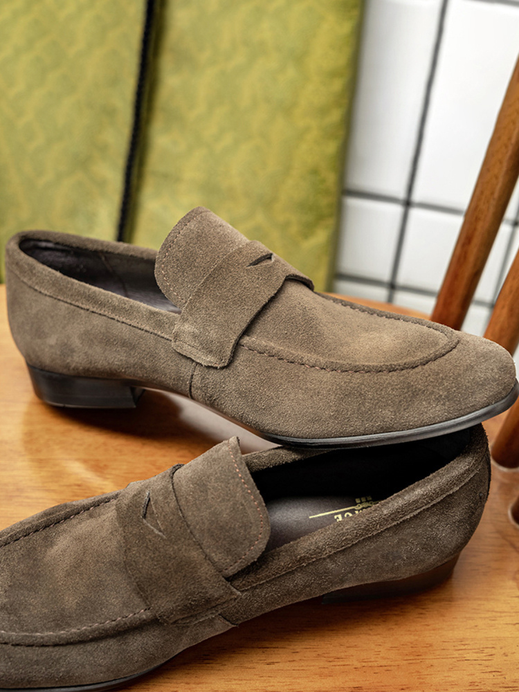 メンズ スリッポン ローファー スエードレザー ラウンドトゥ カジュアル ペニーローファー