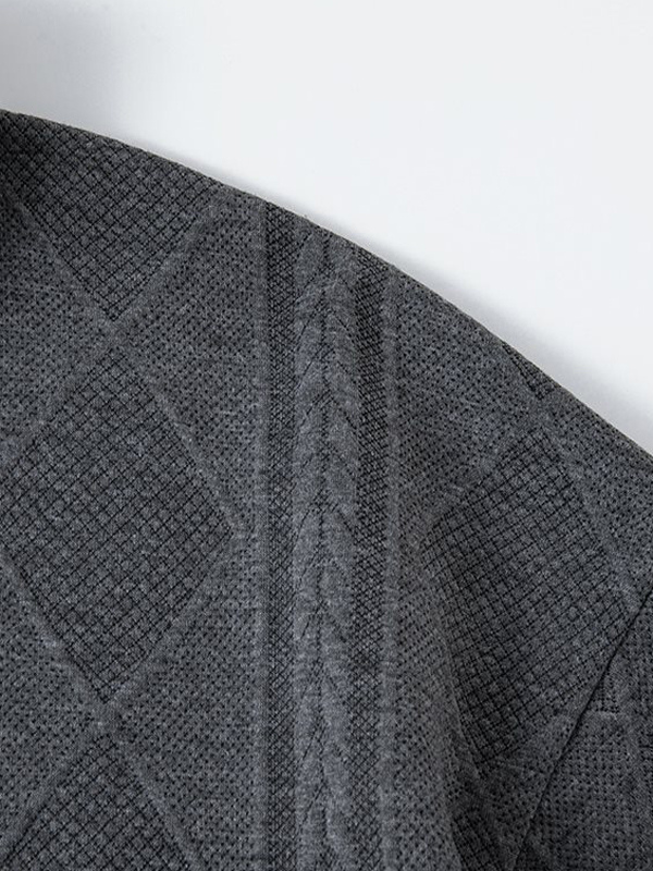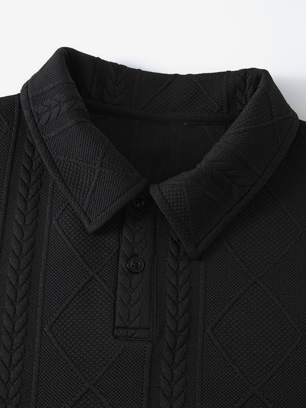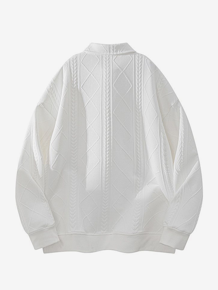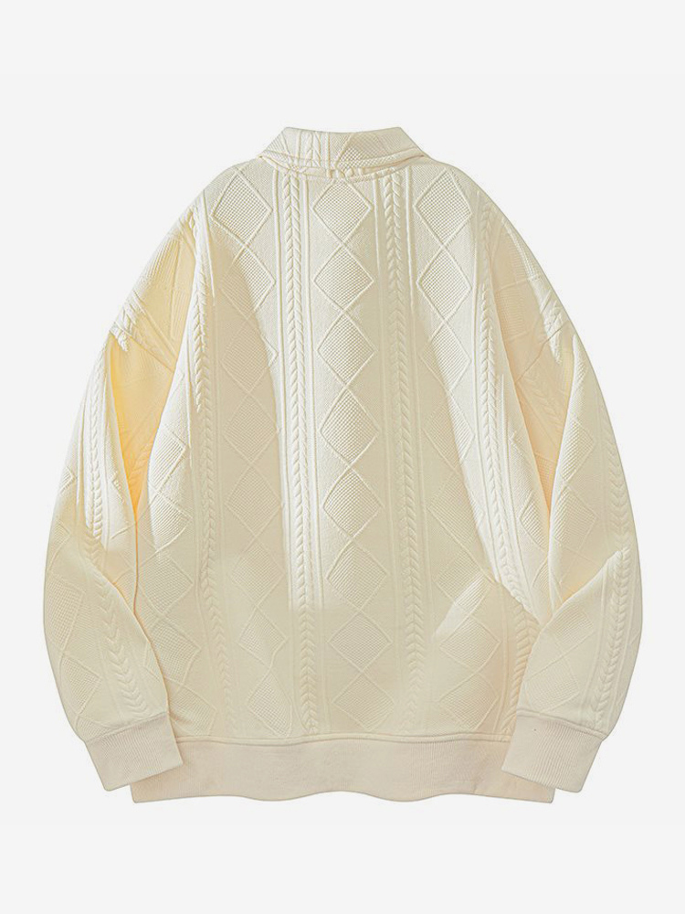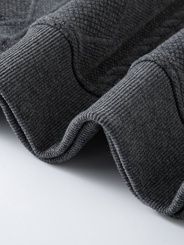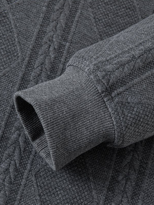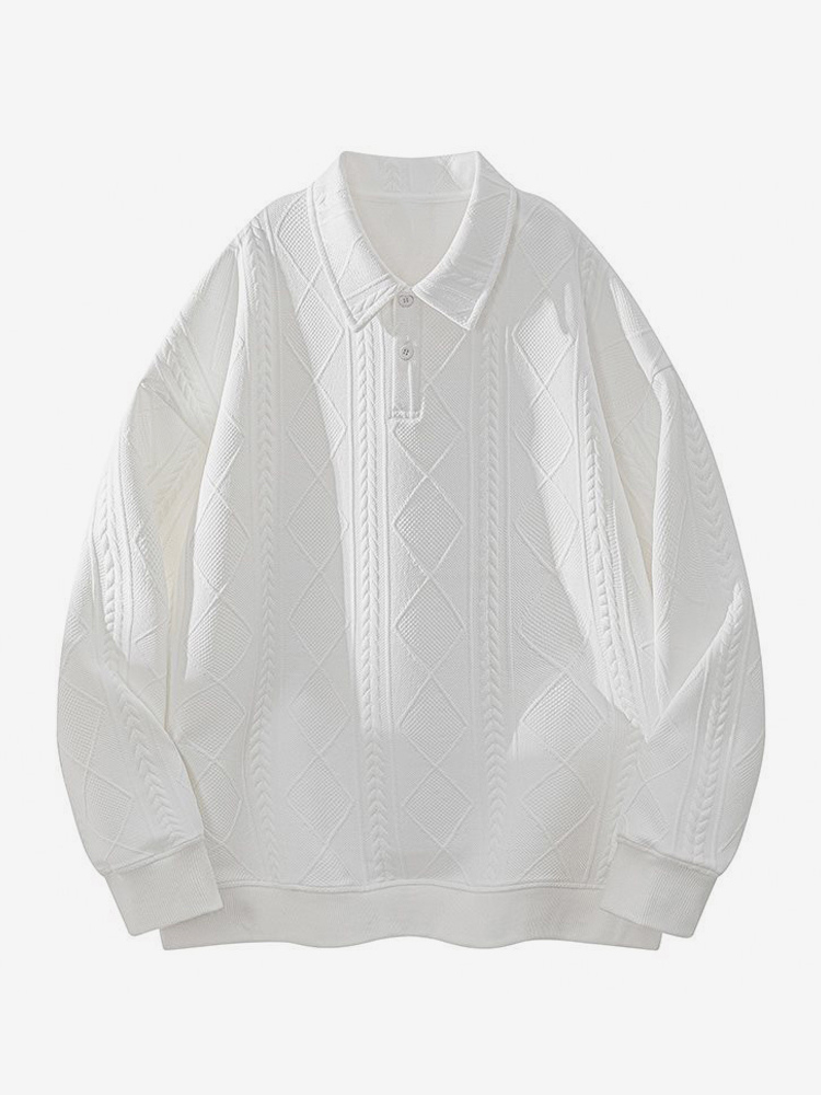 メンズ テクスチャード スウェットシャツ ターンダウンカラー 長袖 レトロスタイル ポロジャケット リブ編みの袖口と裾