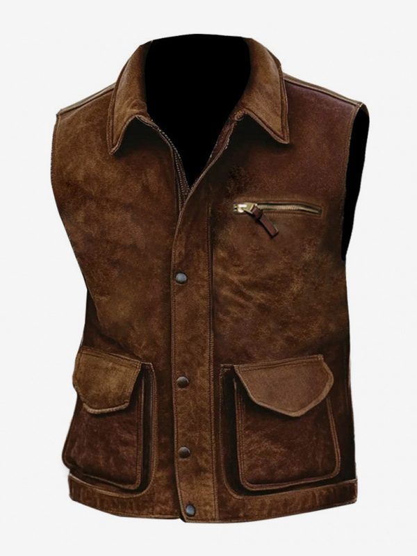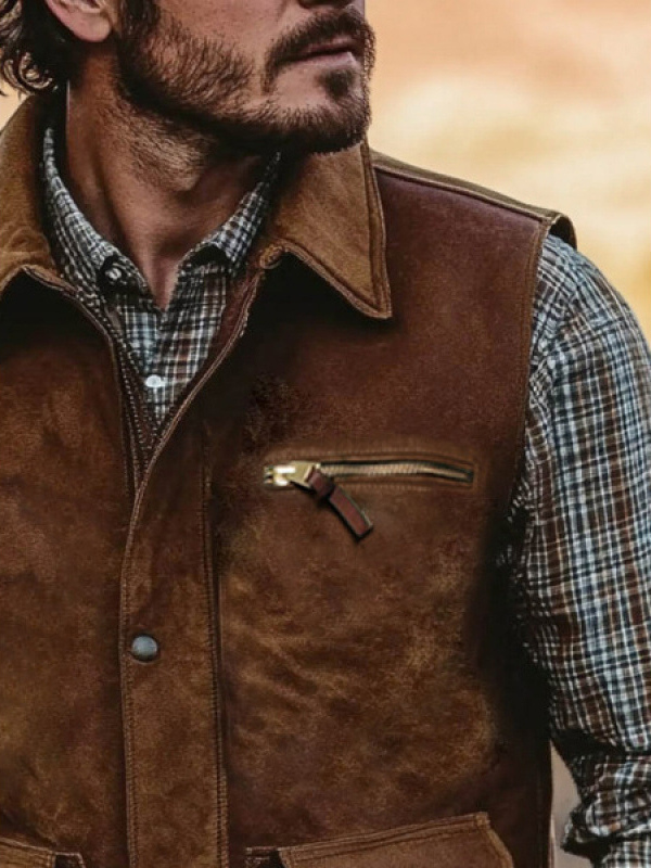 メンズ ヴィンテージ カジュアル マルチポケット アウトドア モーターサイクルベスト ラペルカラー付き