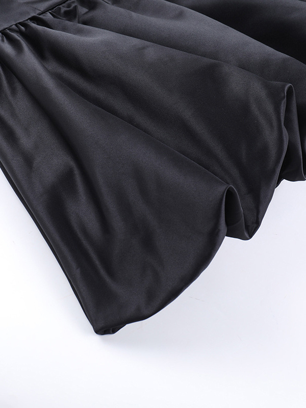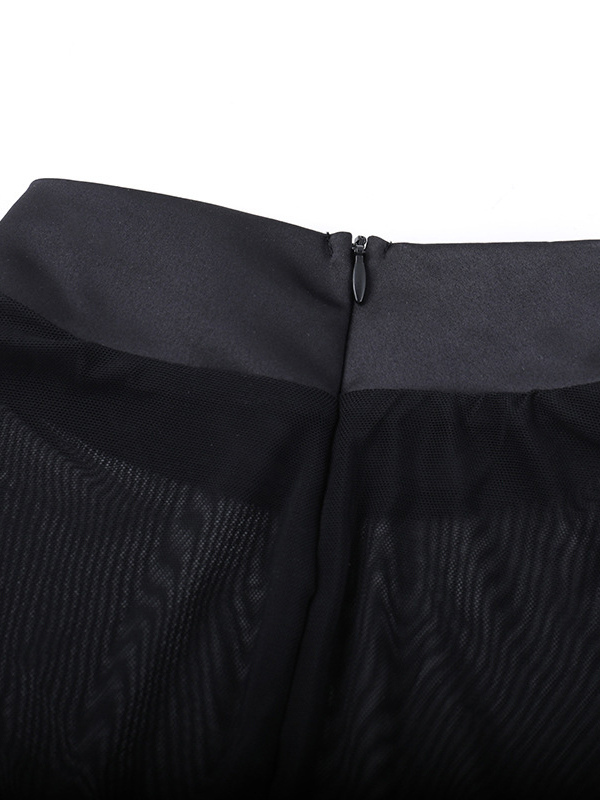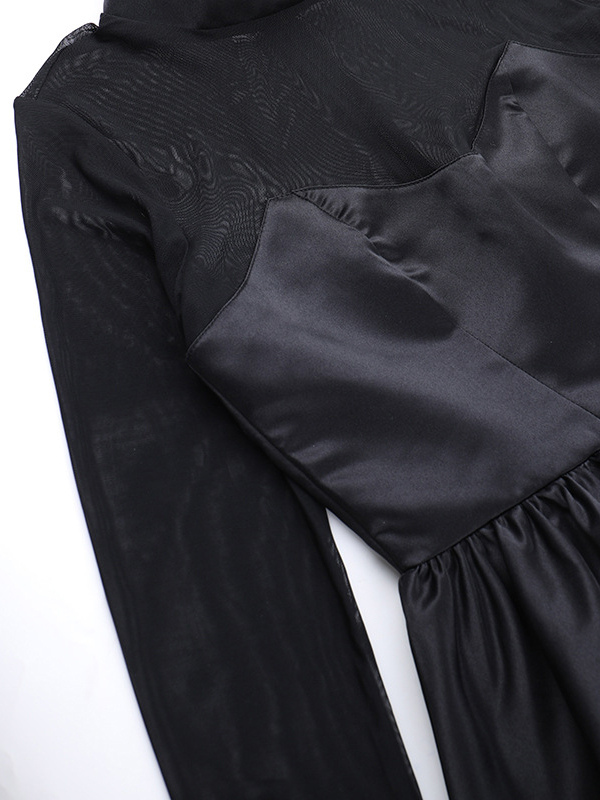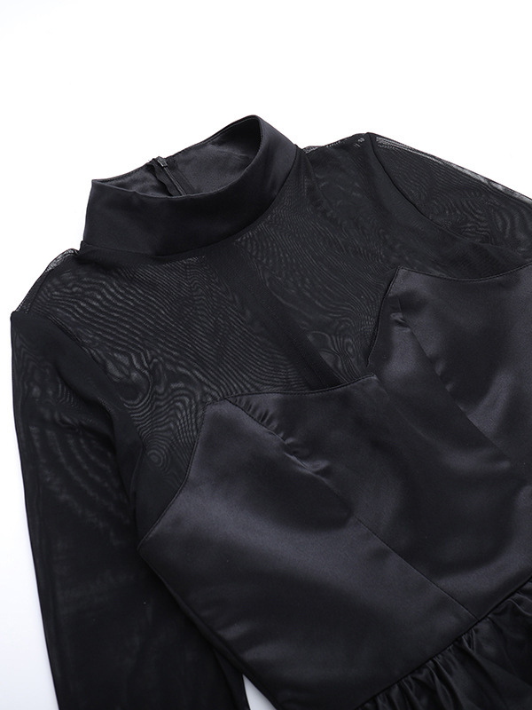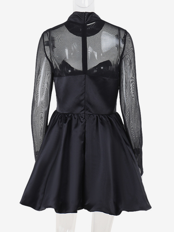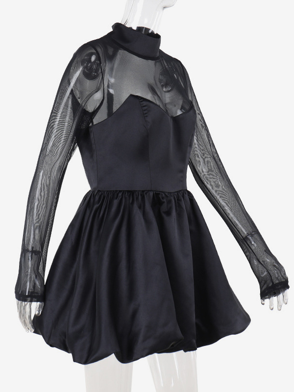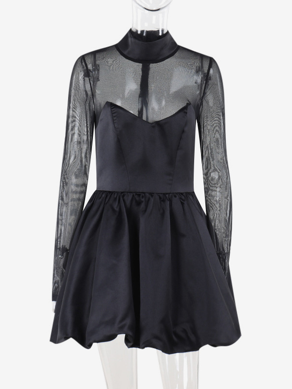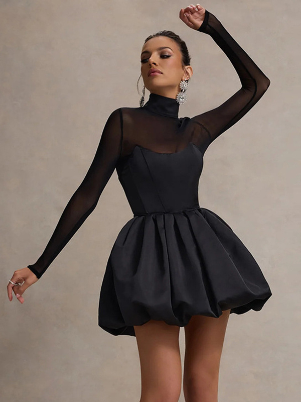 メッシュスリーブミニドレス(レディース) - ブラック エレガント モックネック パフスリーブ スケータードレス - 春のイブニングカクテルドレス 2026