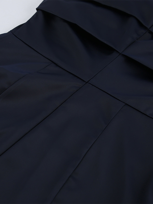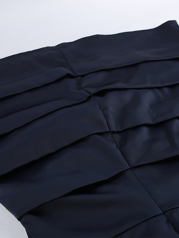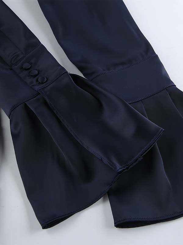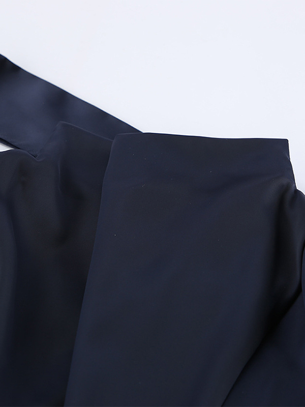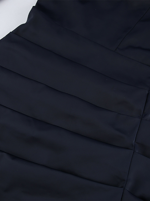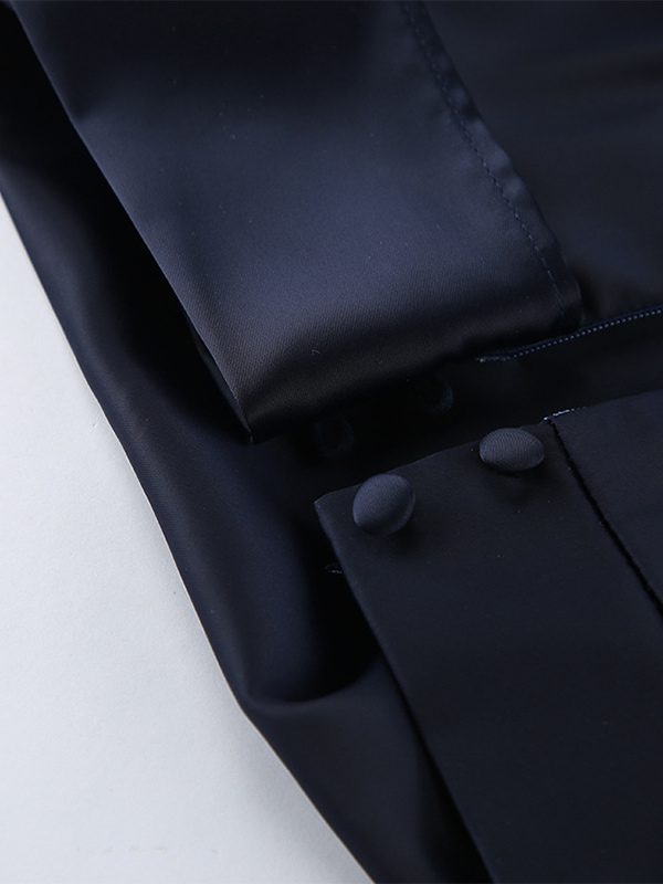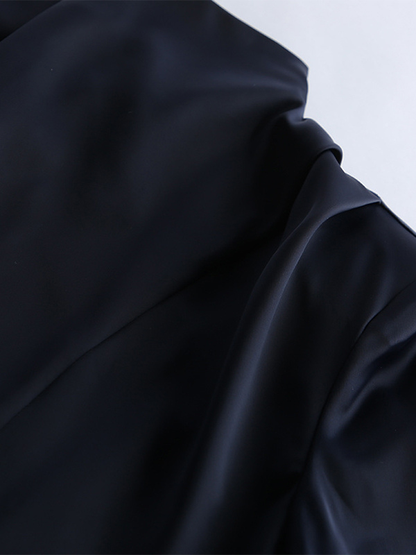 ネイビーブルーのサテンミニドレス(レディース) - エレガントなギャザー入りスタンドカラー、フレアスリーブ - 2026年春のカクテルパーティーに最適