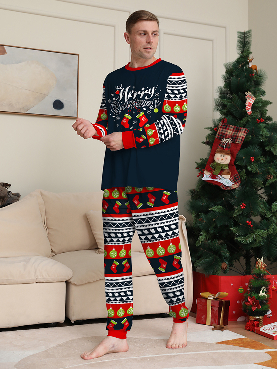 ネイビーレッドグリーンフェアアイルファミリークリスマスパジャマホリデーパターン2025