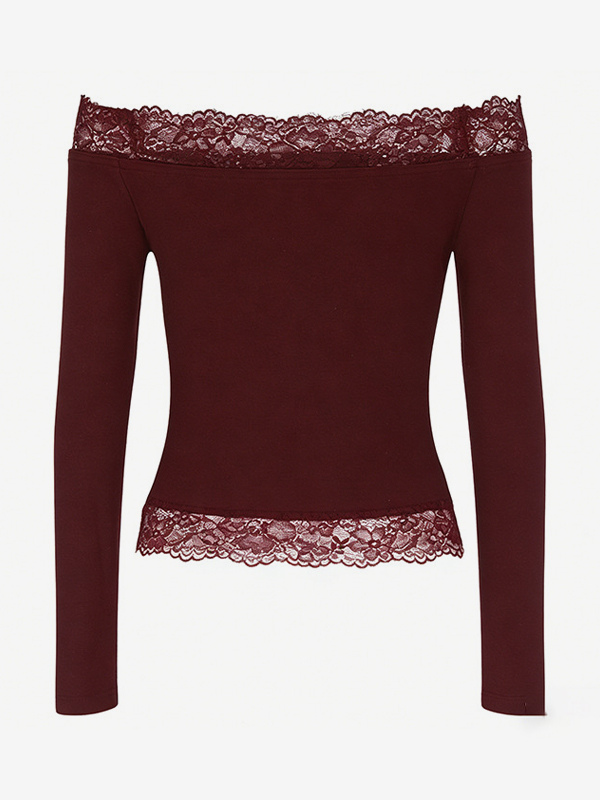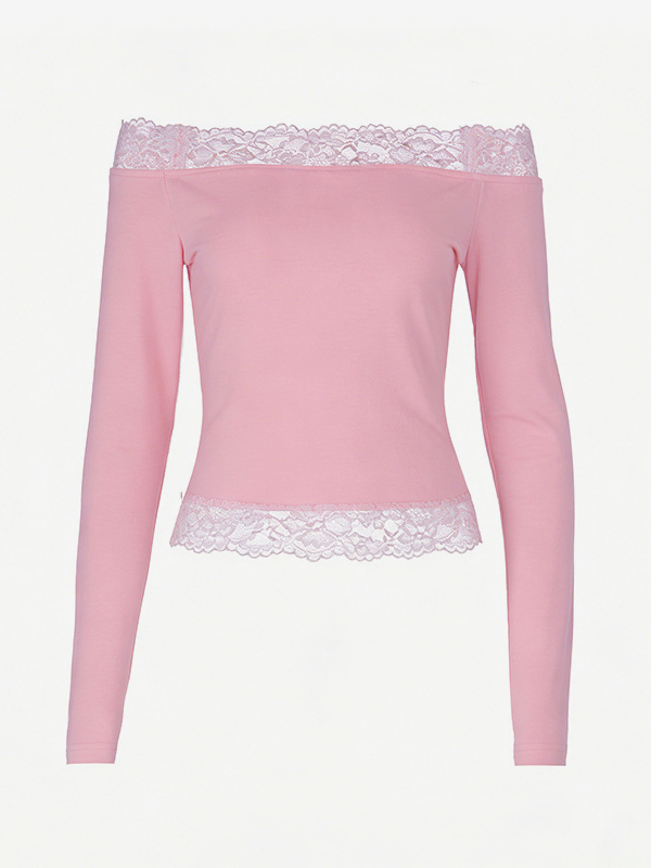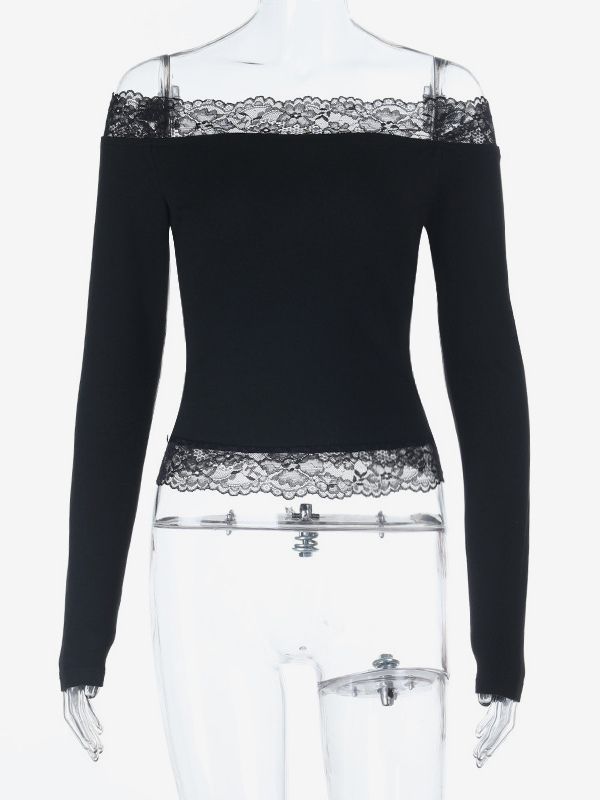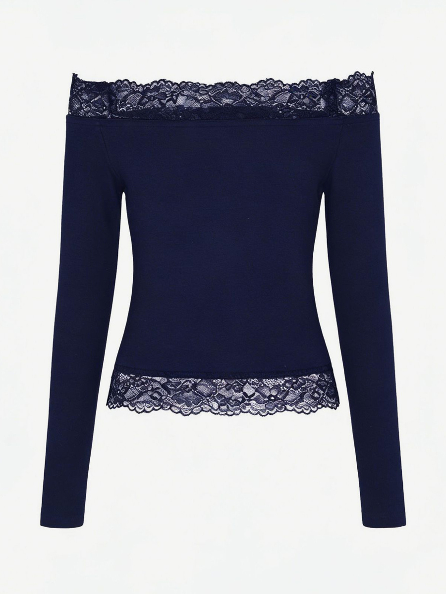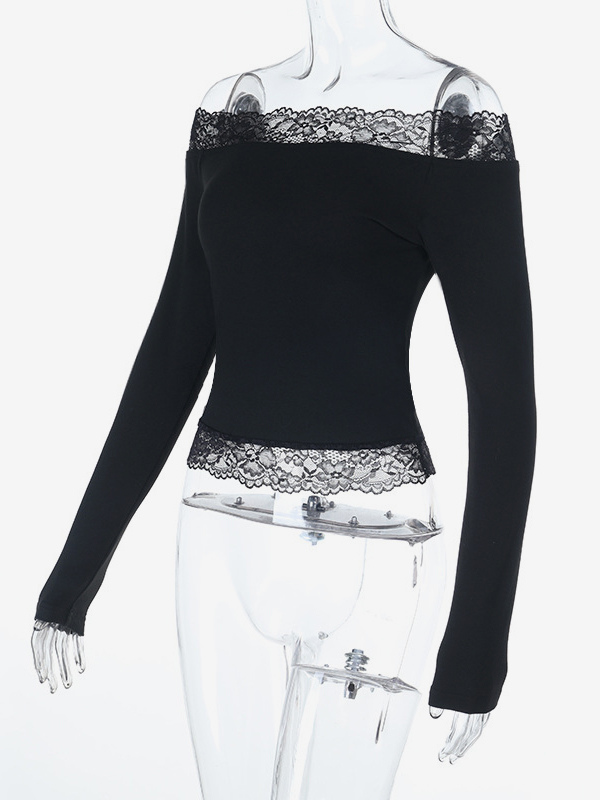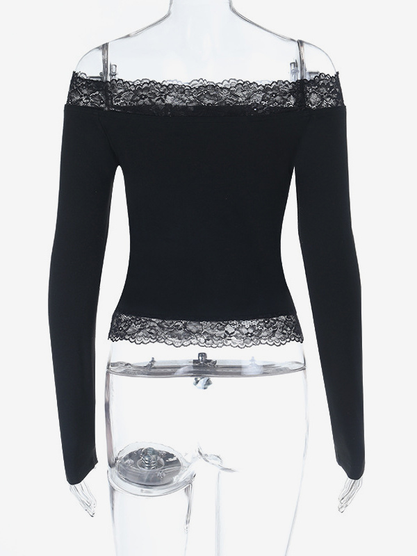 オフショルダーレーストリムクロップトップ(レディース) - 長袖スリムフィットY2Kブラウス - 2026年春のストリートウェア