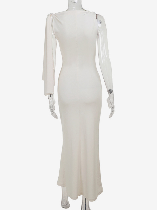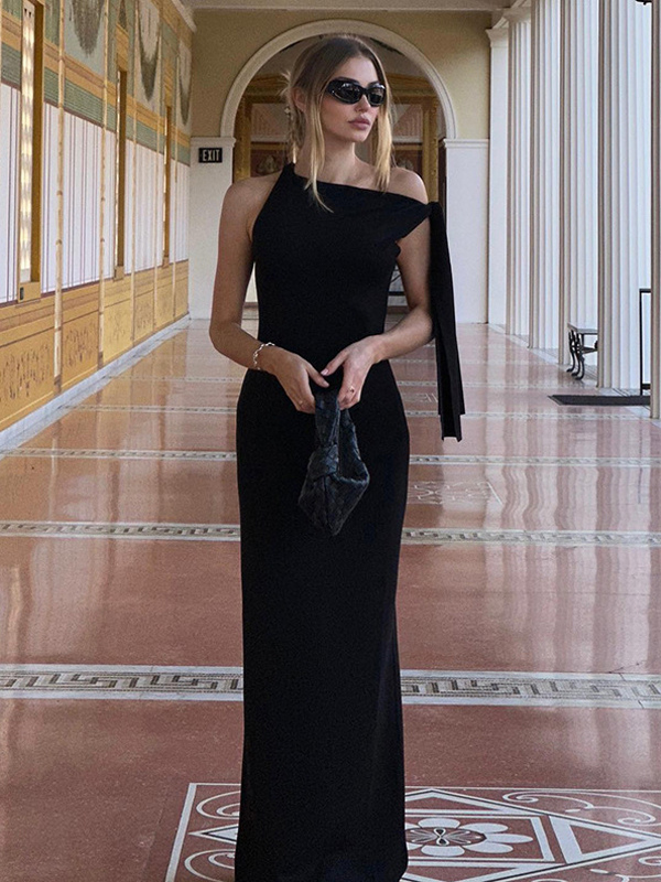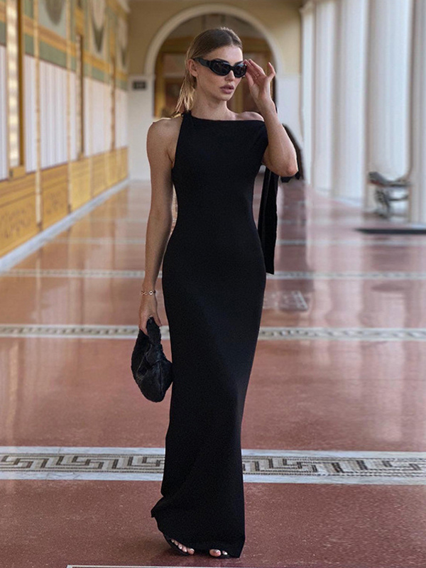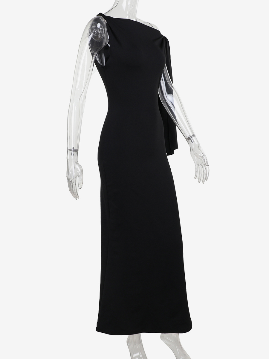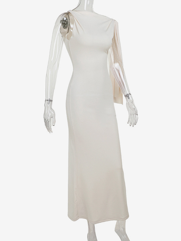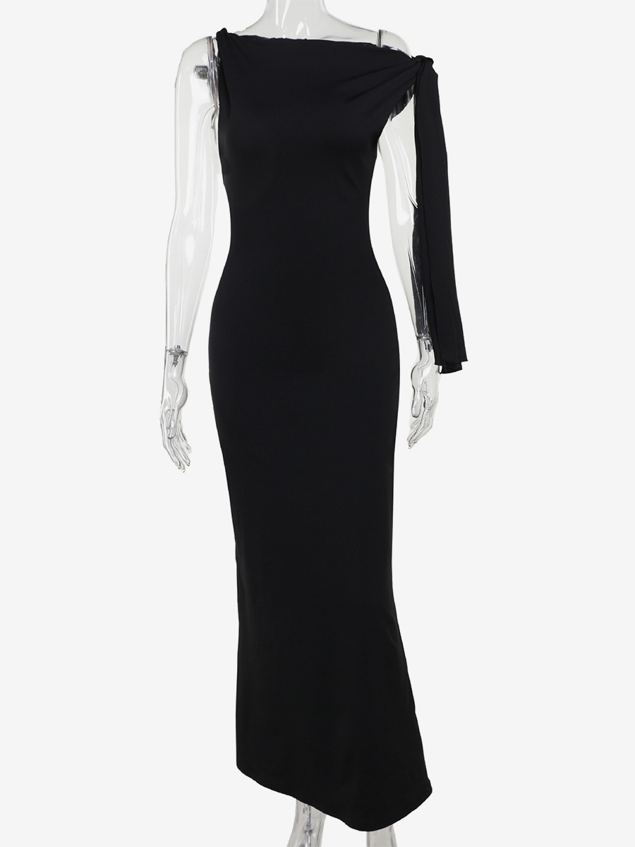 オフショルダーマキシドレス(女性用) - ミニマルでエレガントなボディコンロングドレス - 夏のフォーマルイブニングガラ 2026