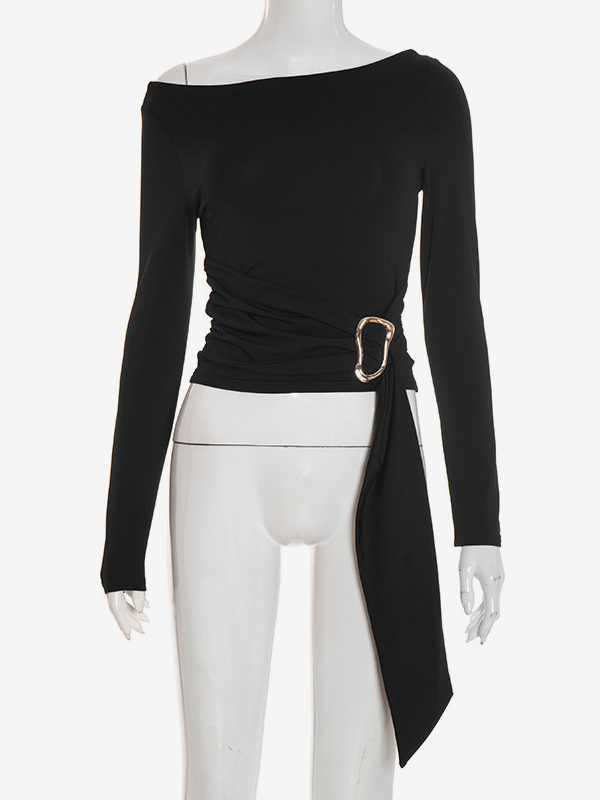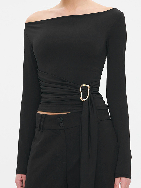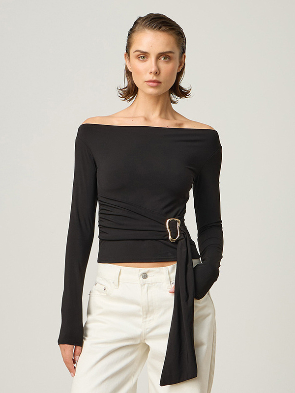 オフショルダートップス(レディース) ルーシュウエスト&バックルディテール 2025