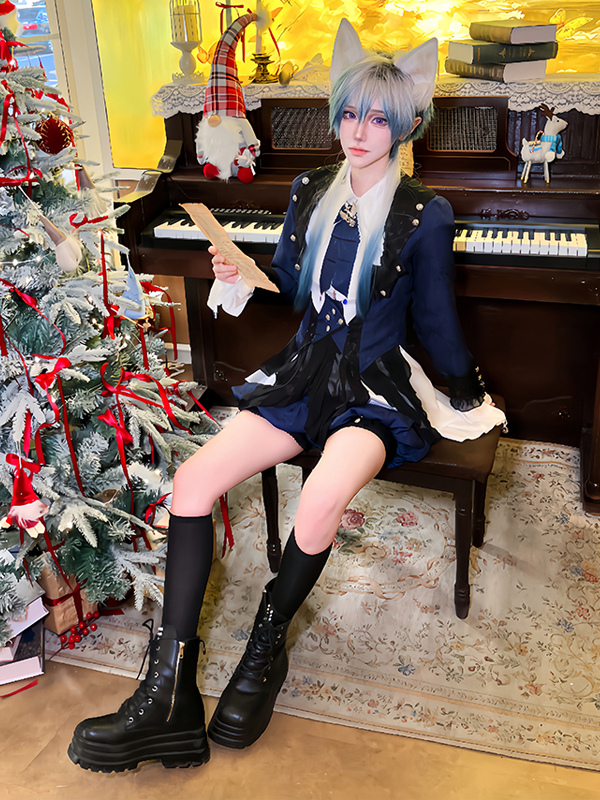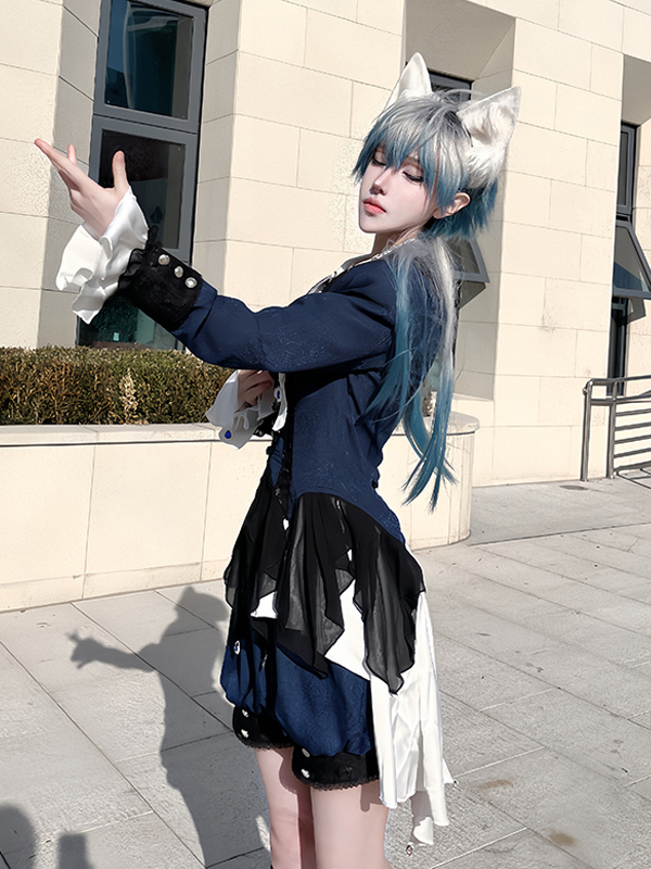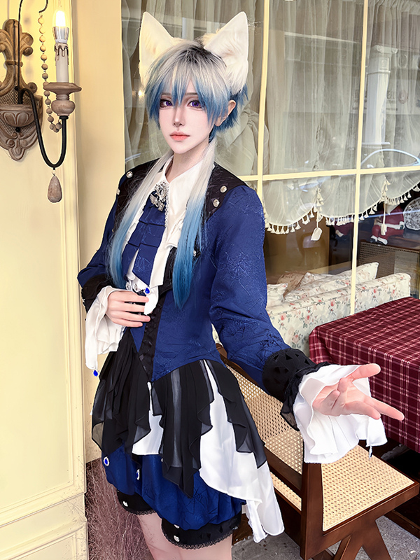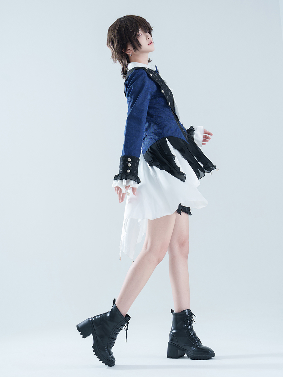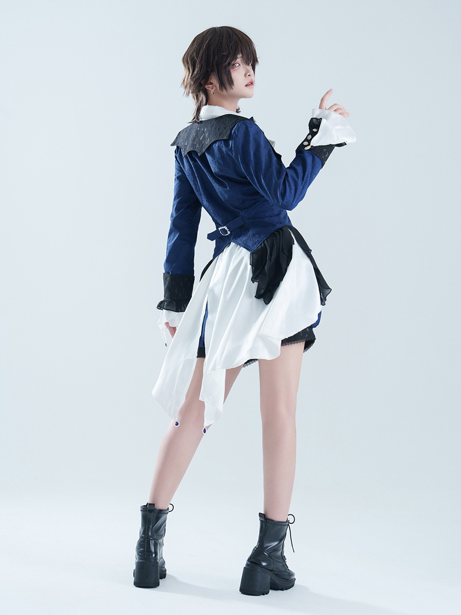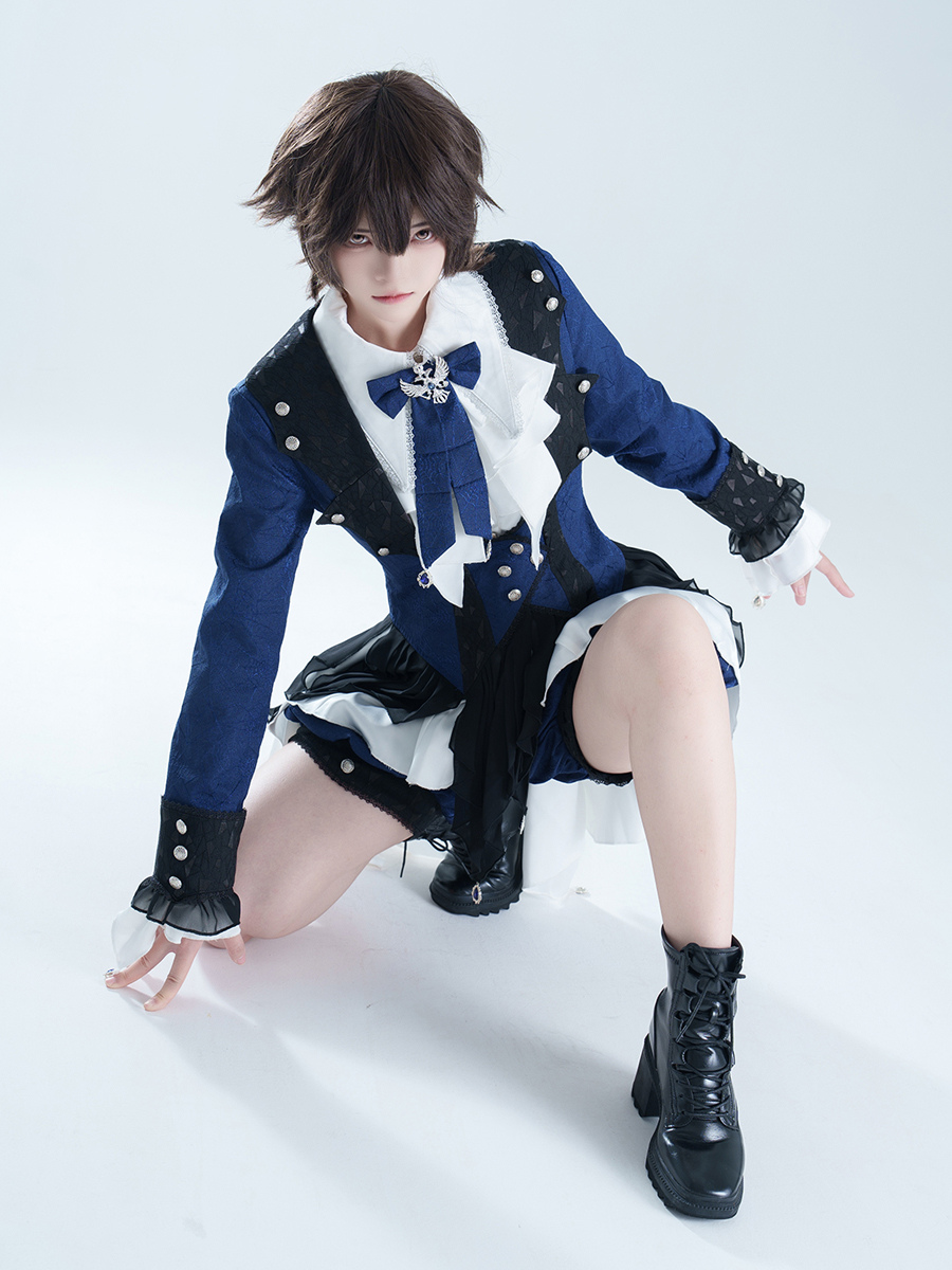 王子ロリータドレス ダークネイビー 長袖 クラシックリボン オーバーコート パンツドレスセット