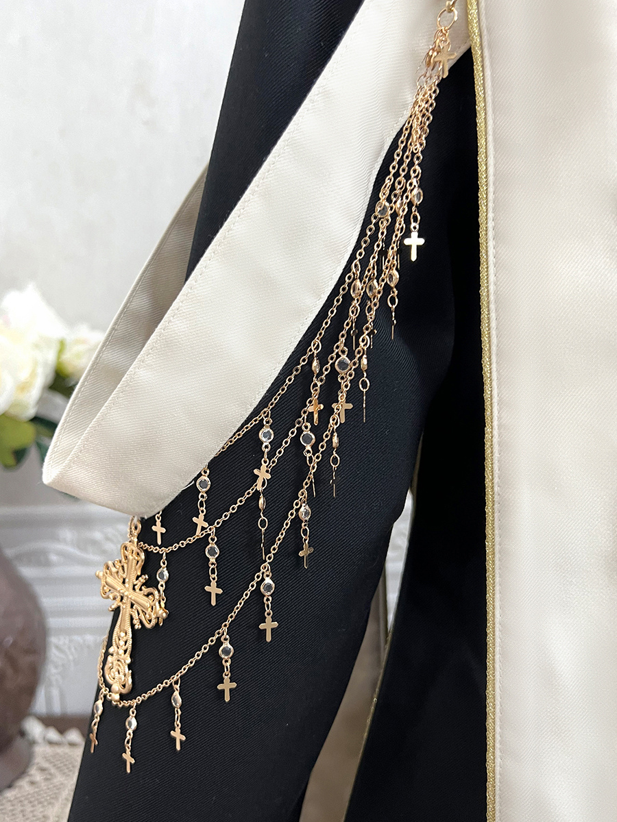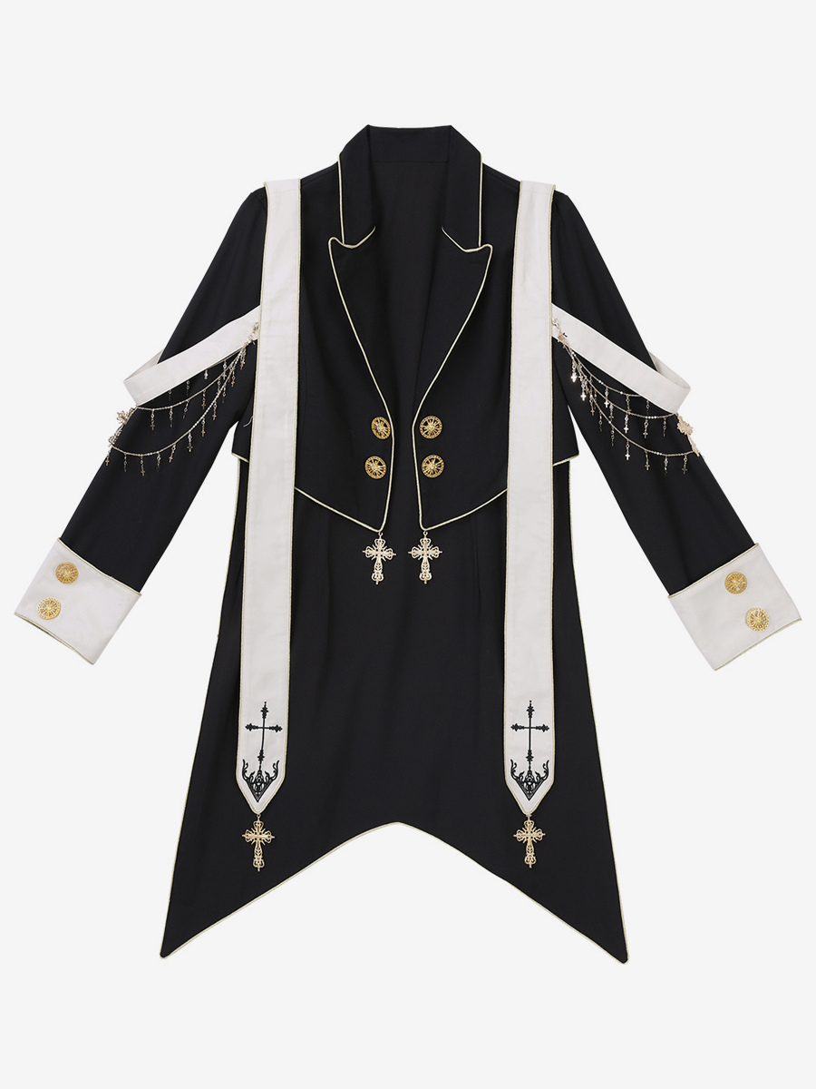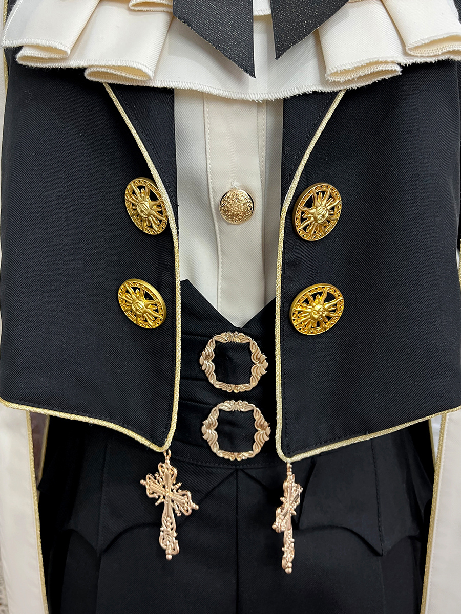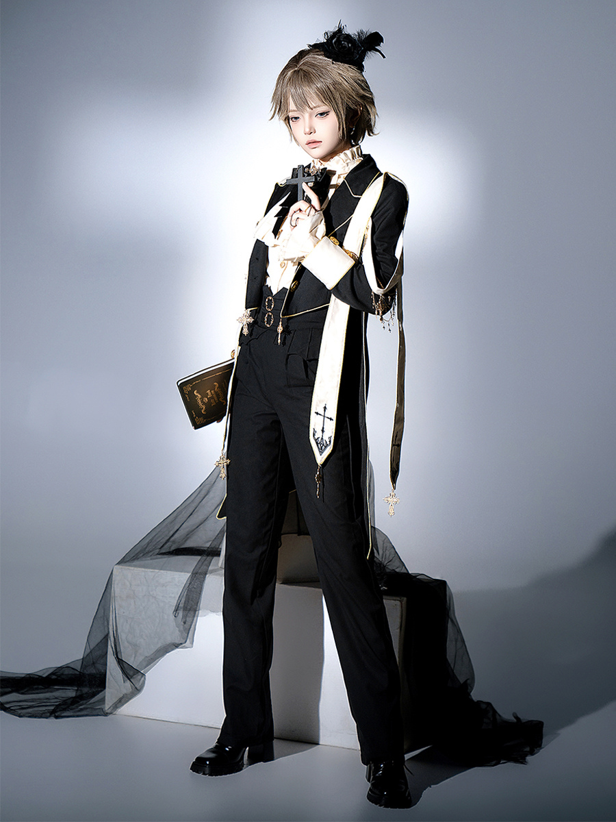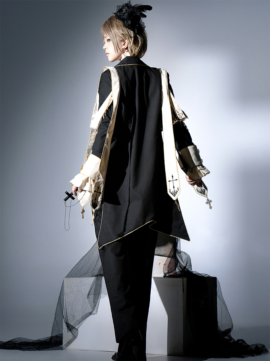 王子 ロリータ ドレス ゴシック ブラック クラシック フリル クロス 長袖 シャツ オーバーコート パンツ セット