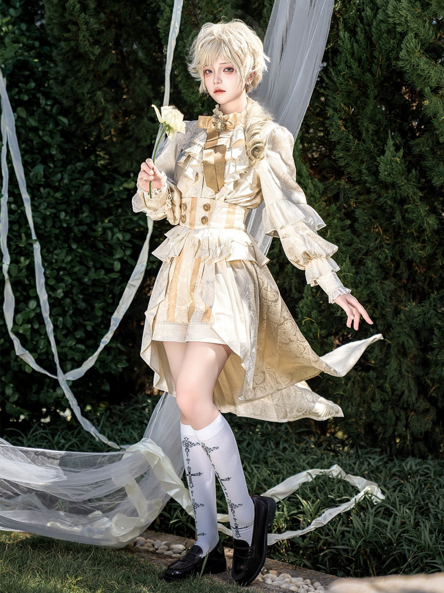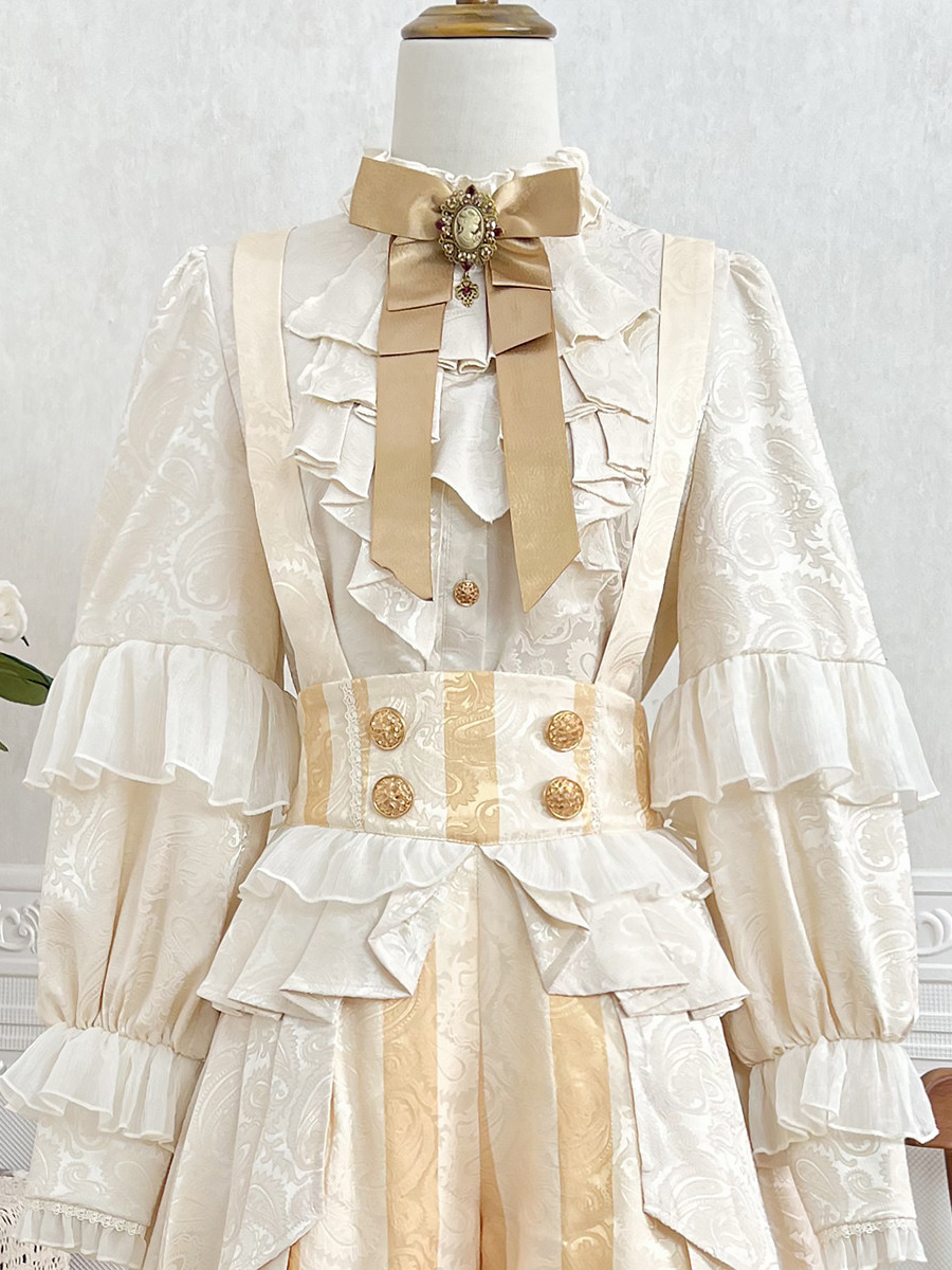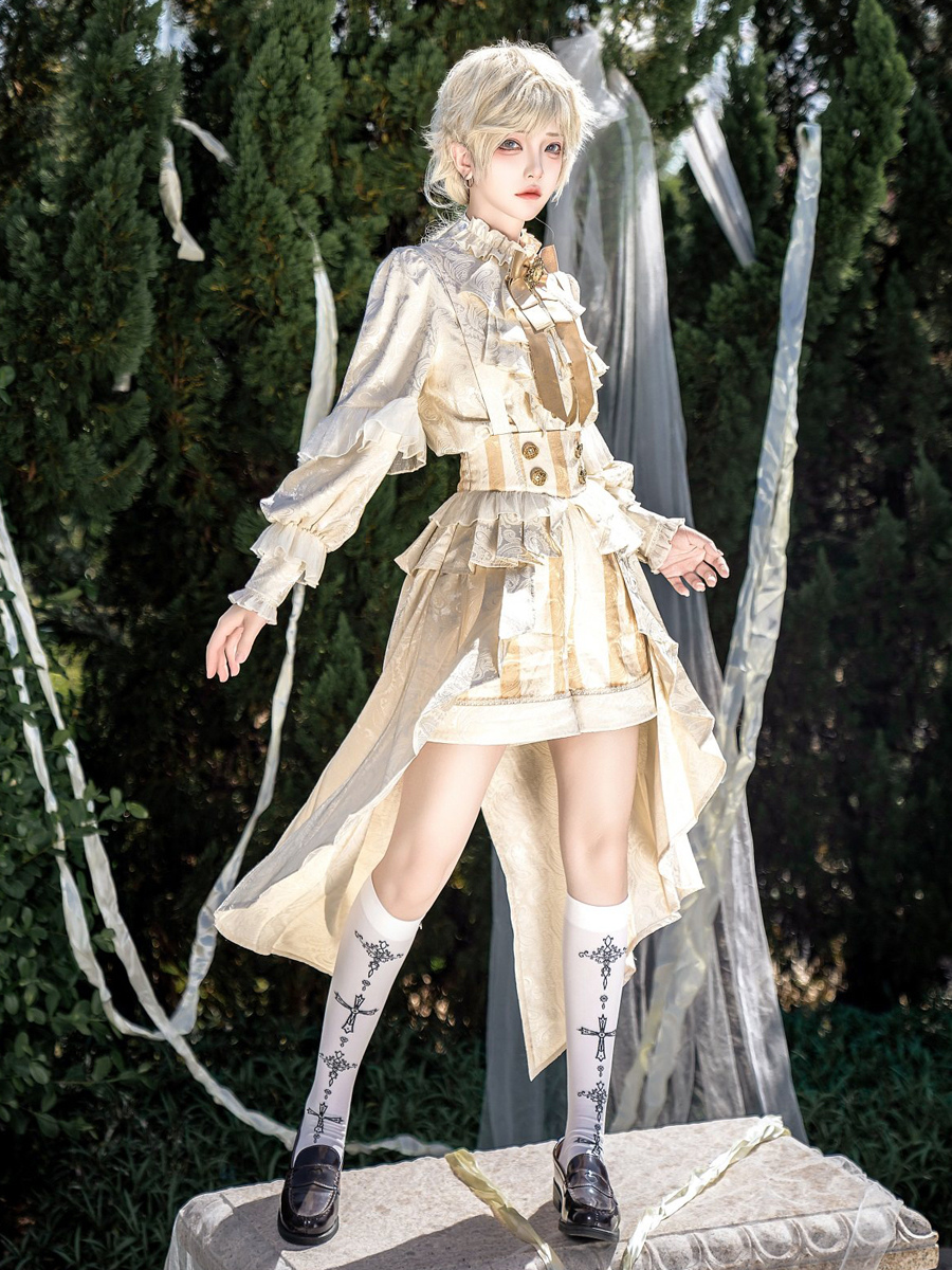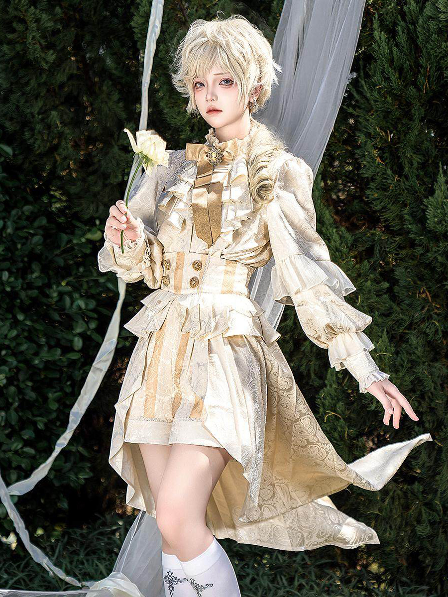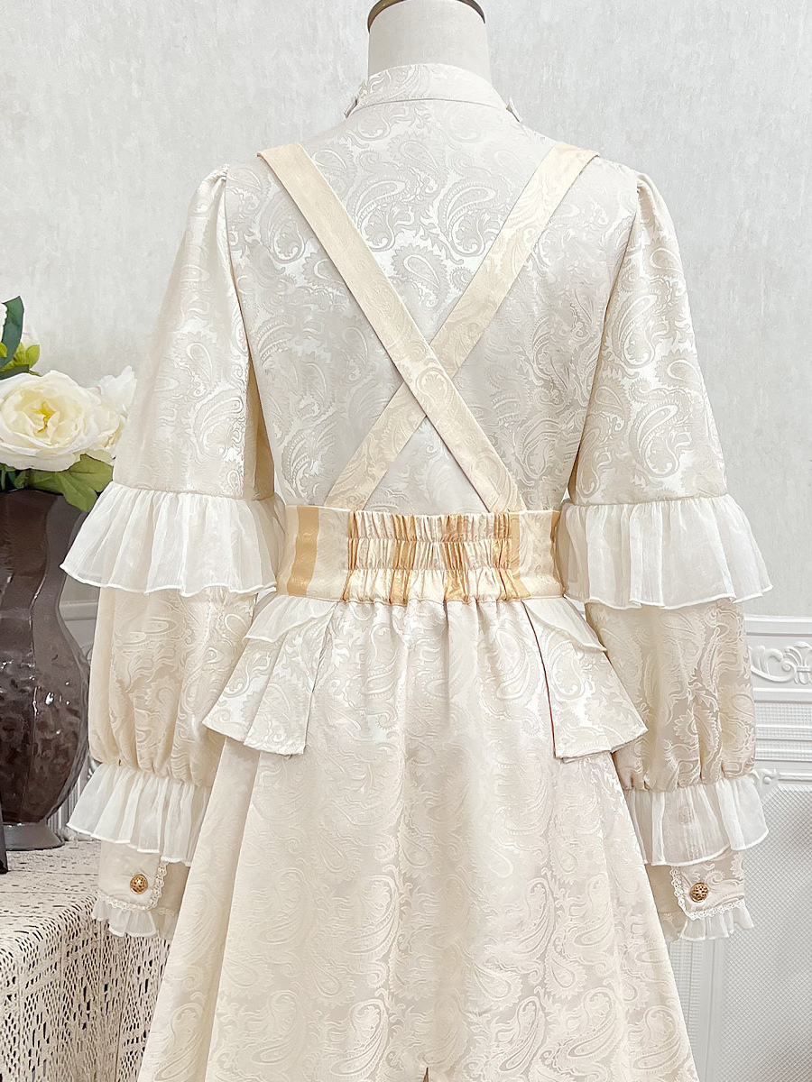 王子王子 ロリータ ホワイト トップ ドレス セット フリル レース ロングスリーブ ロリータ セット