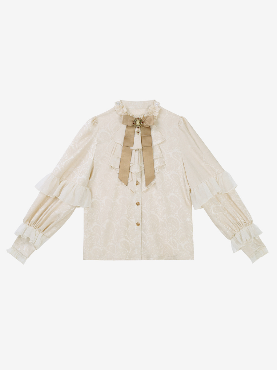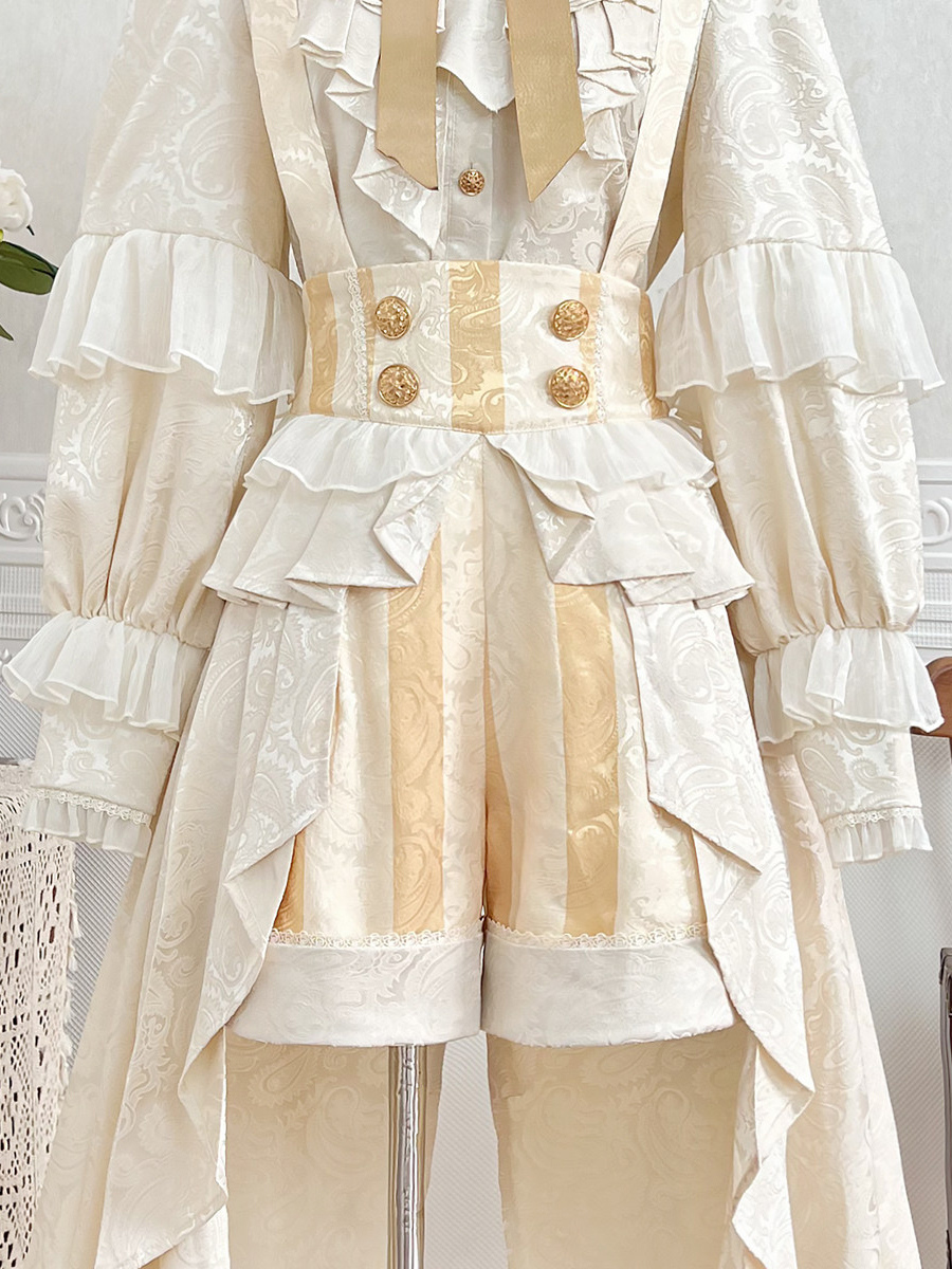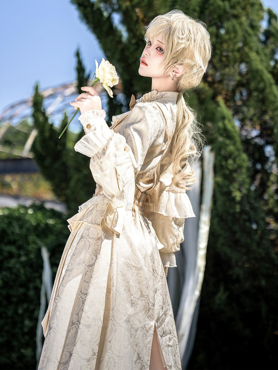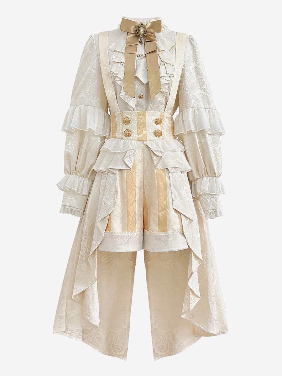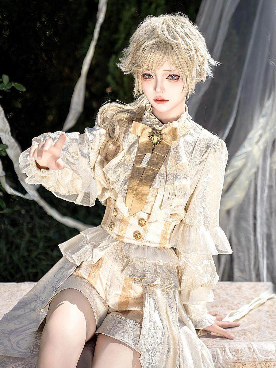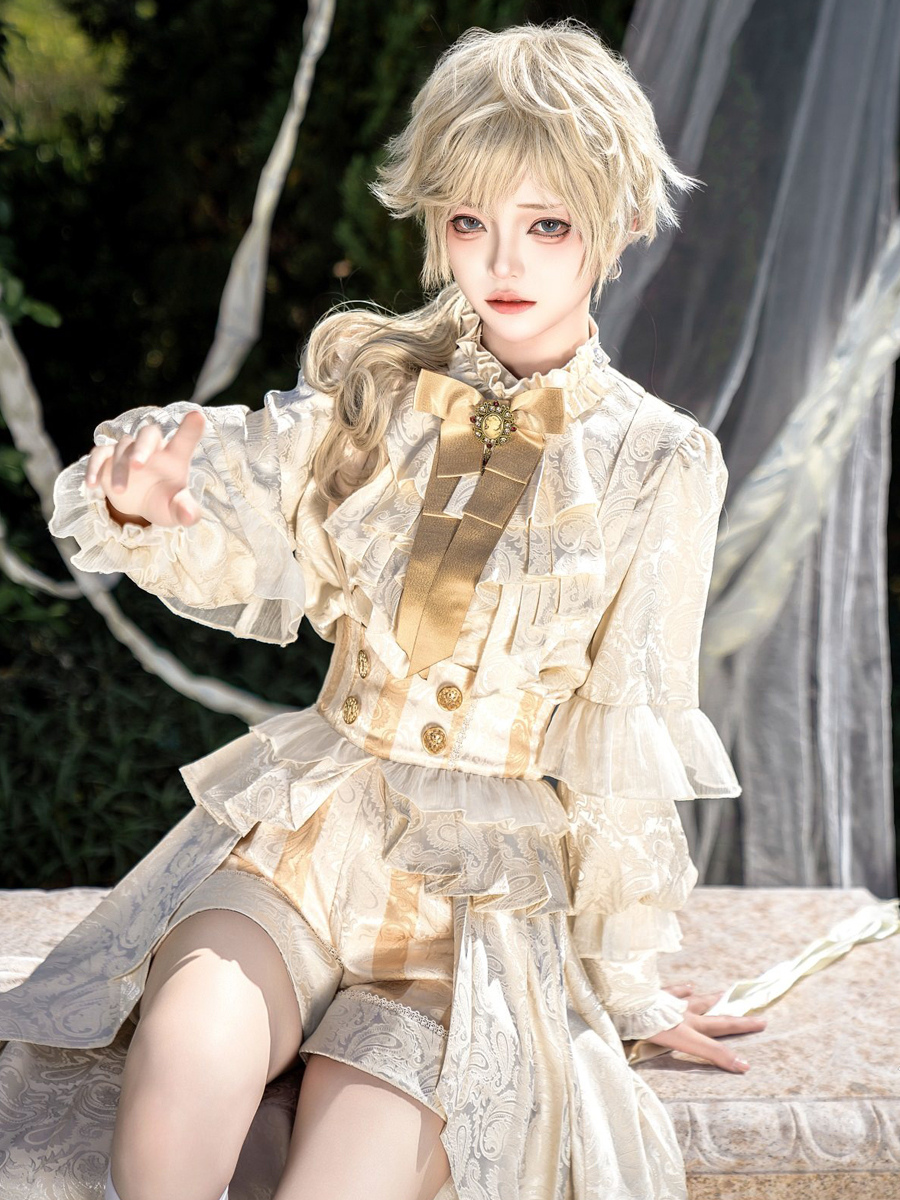 王子王子 ロリータ ホワイト トップ ドレス セット フリル レース ロングスリーブ ロリータ セット
