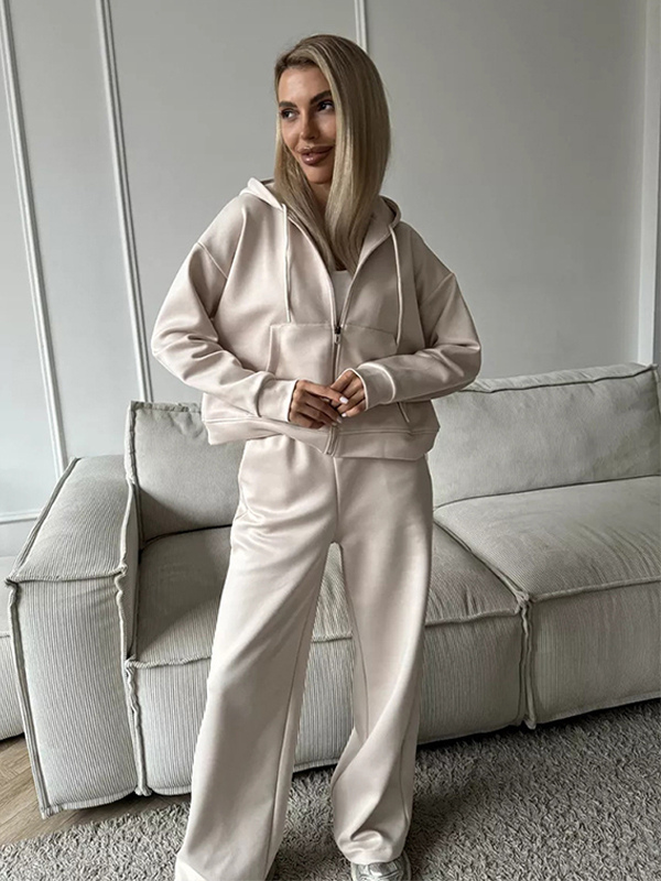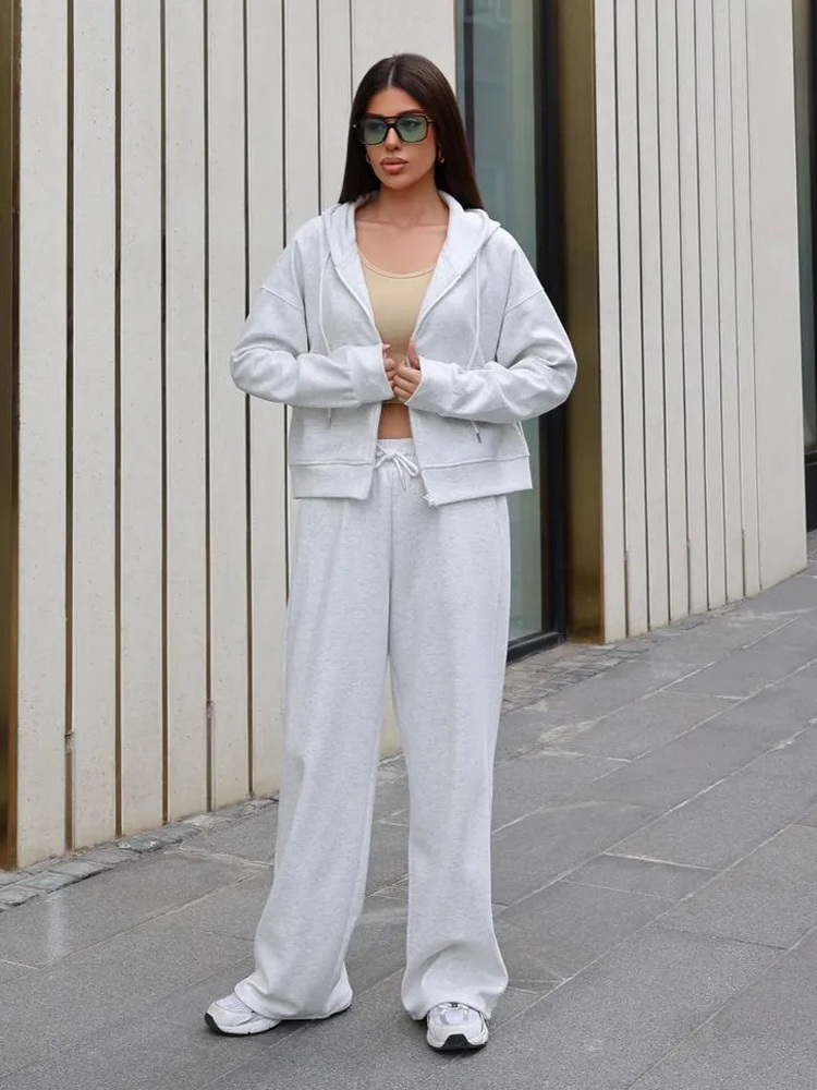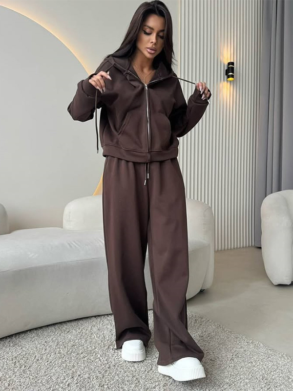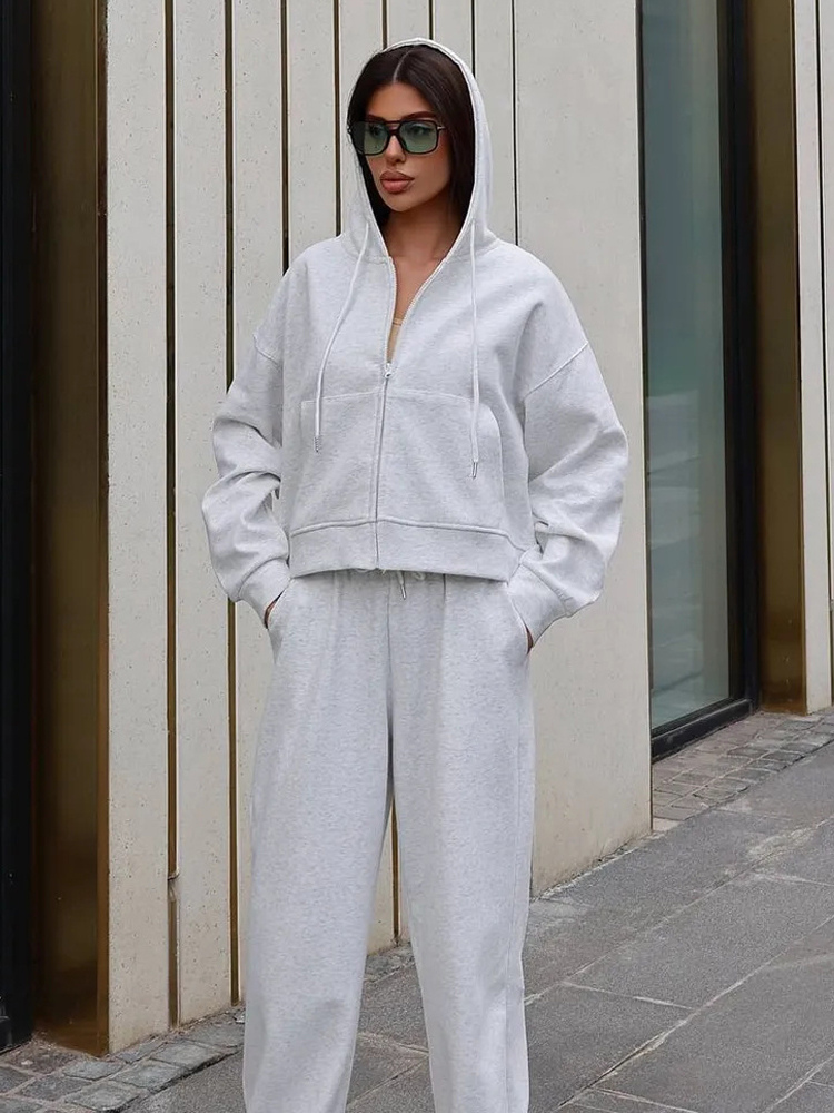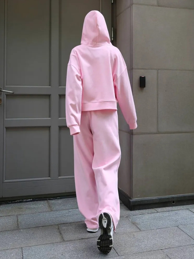 オーバーサイズ クロップド ジップパーカーとワイドレッグ トラックスーツ セット(レディース 2025)