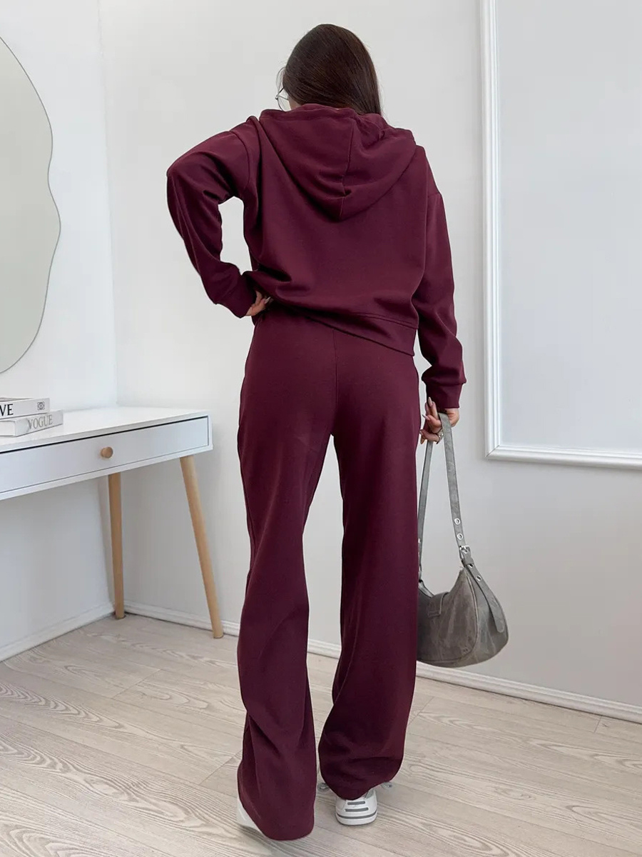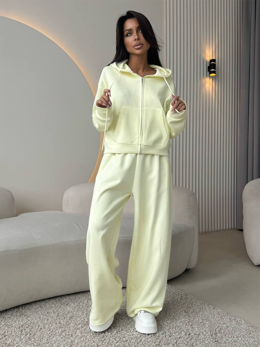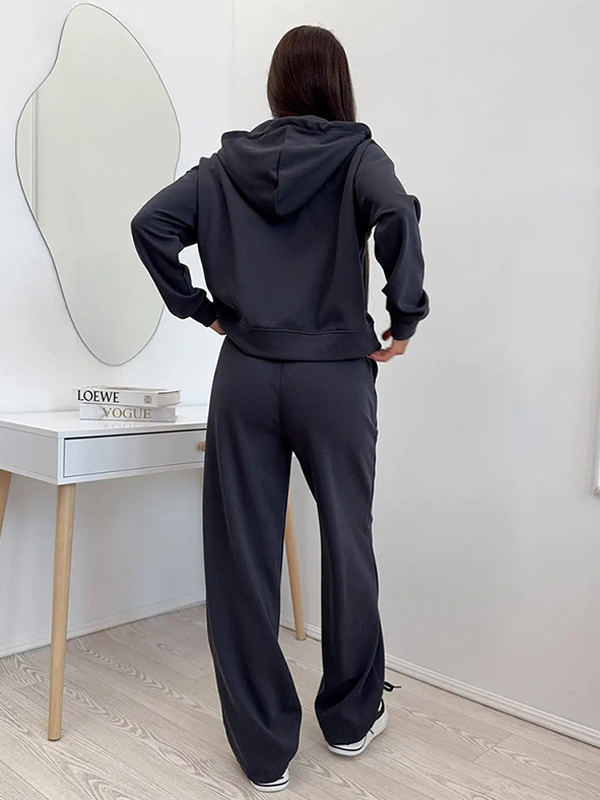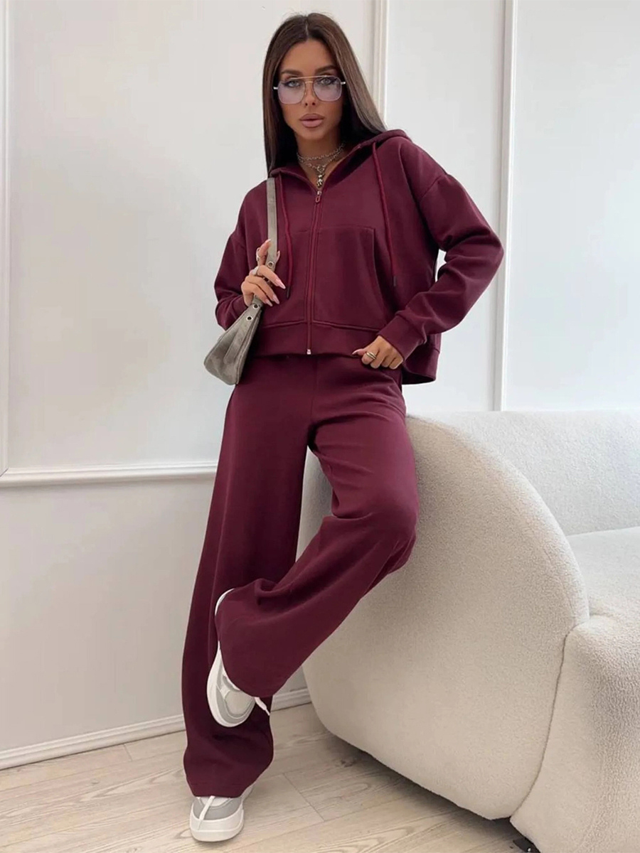 オーバーサイズ クロップド ジップパーカーとワイドレッグ トラックスーツ セット(レディース 2025)