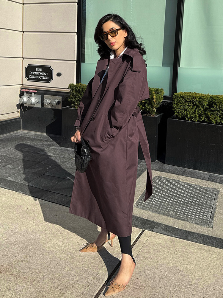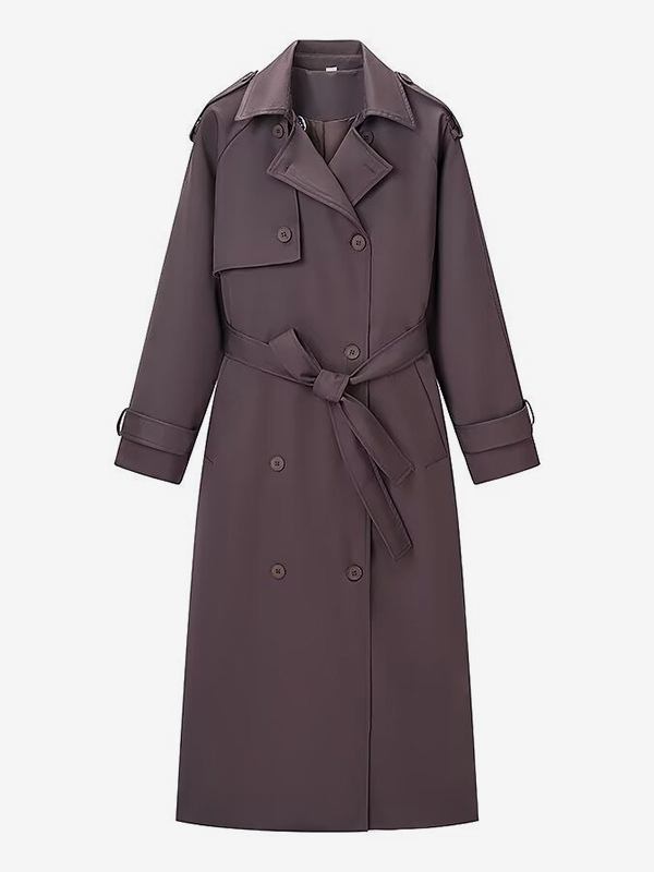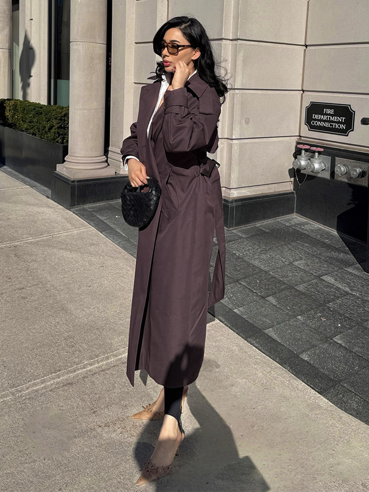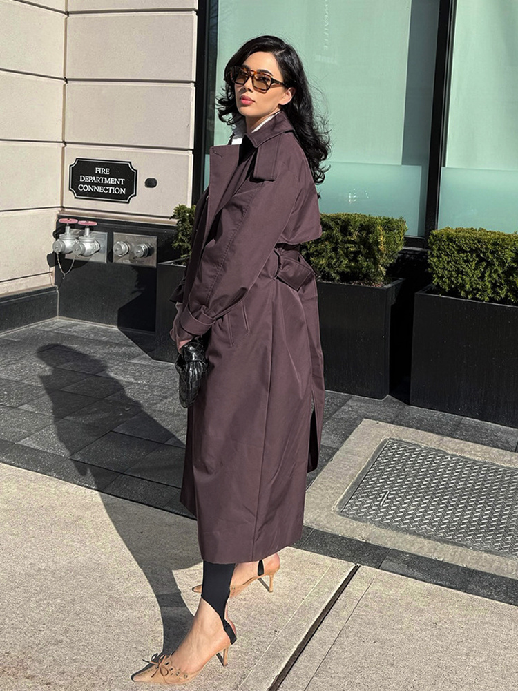 レディース用オーバーサイズトレンチコート - チョコレートブラウンのシックなダブルブレストマキシウィンドブレーカー - 2026年春の夜のお出かけに