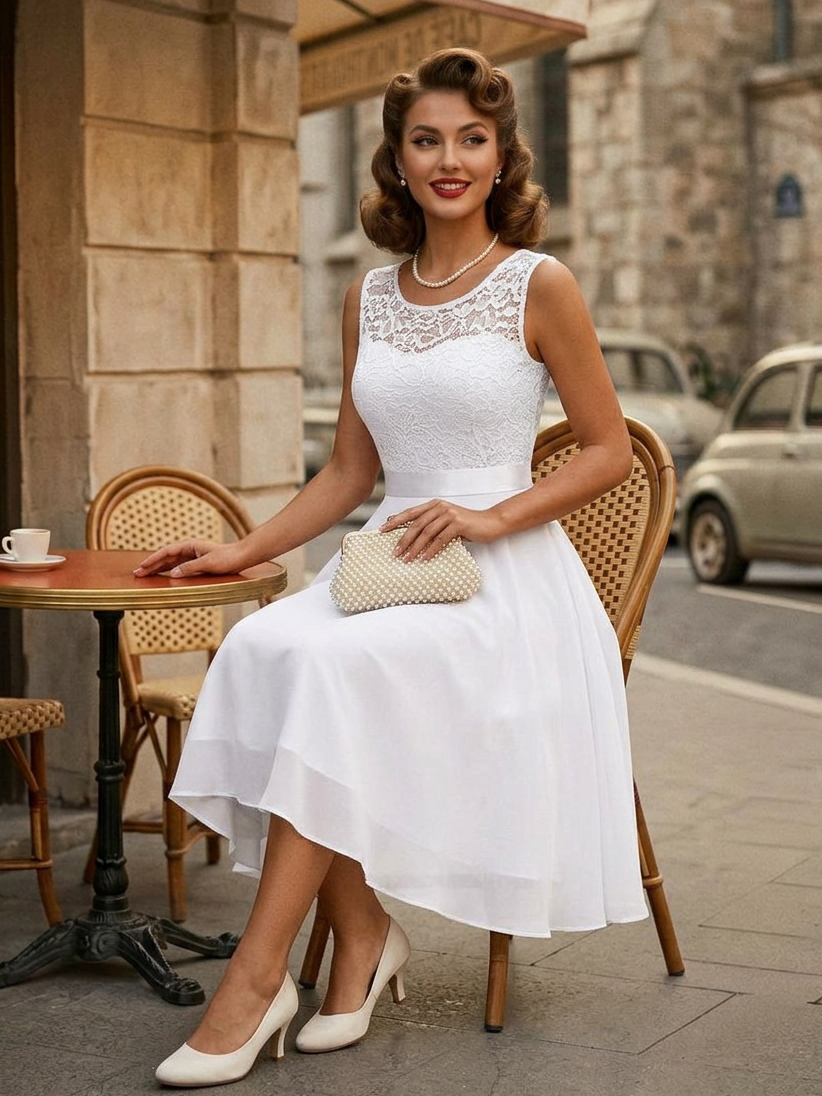 | ネックレス | ラウンドネック | 生地 | レース, シフォン |