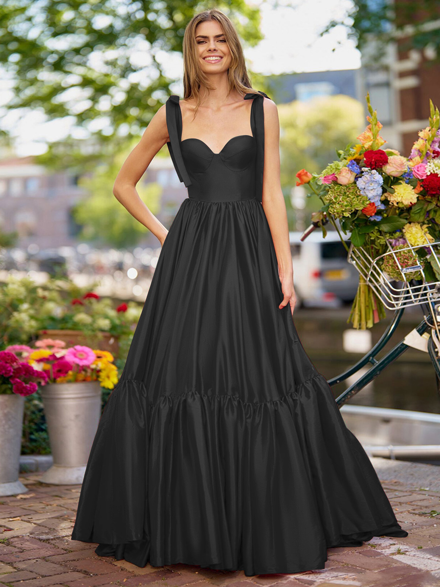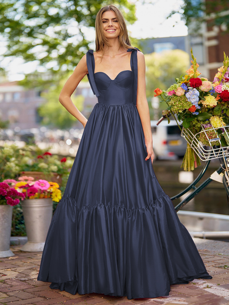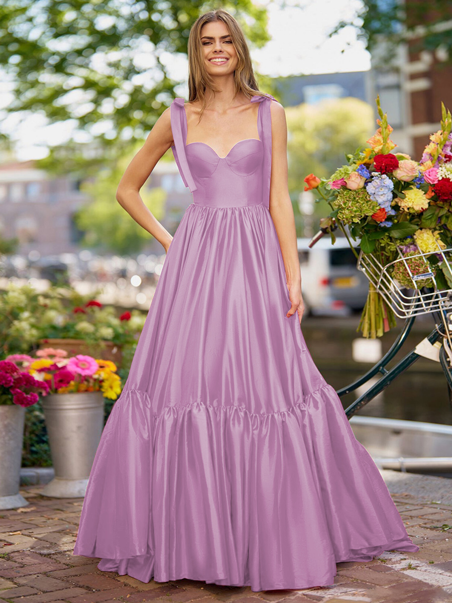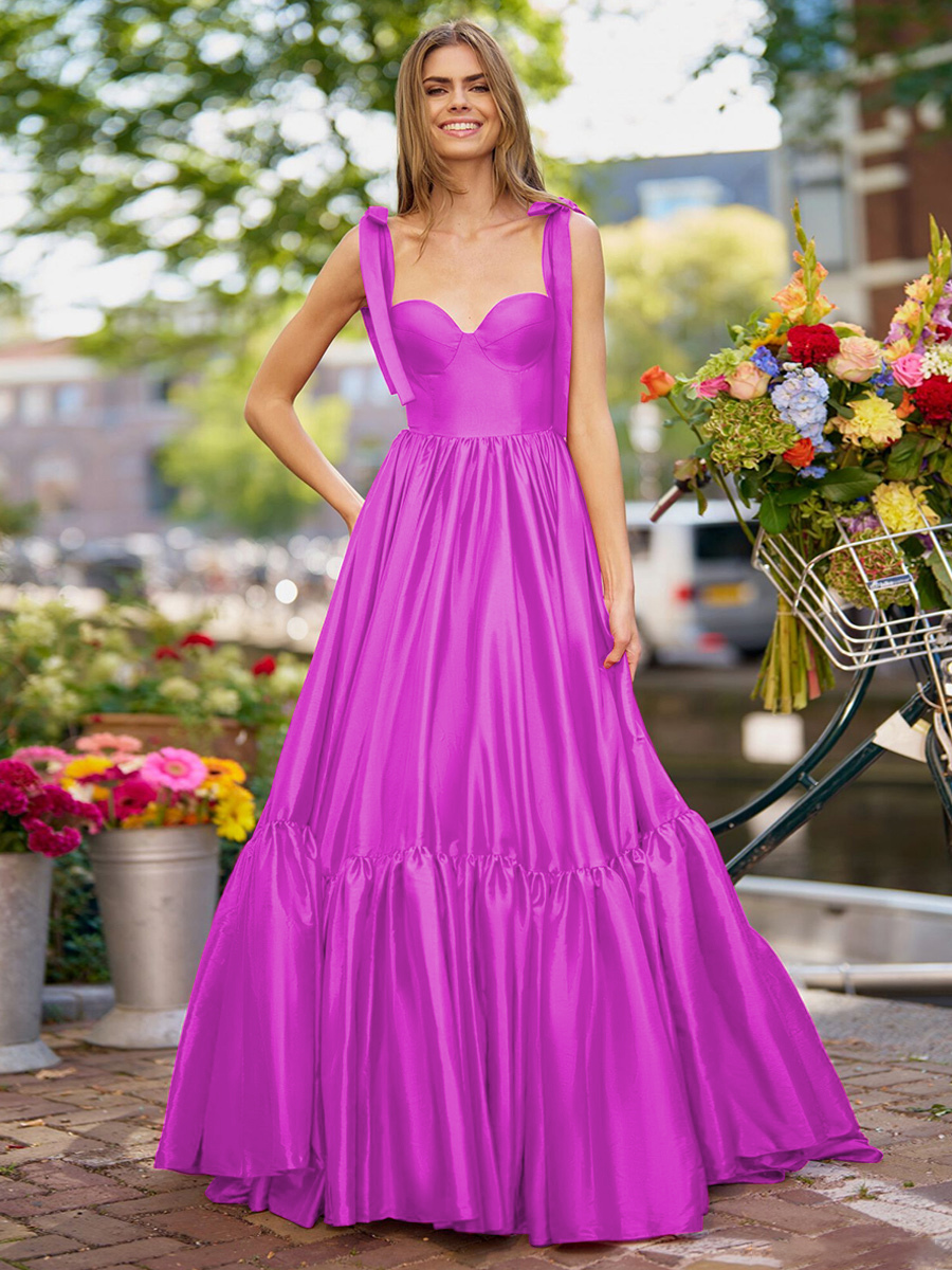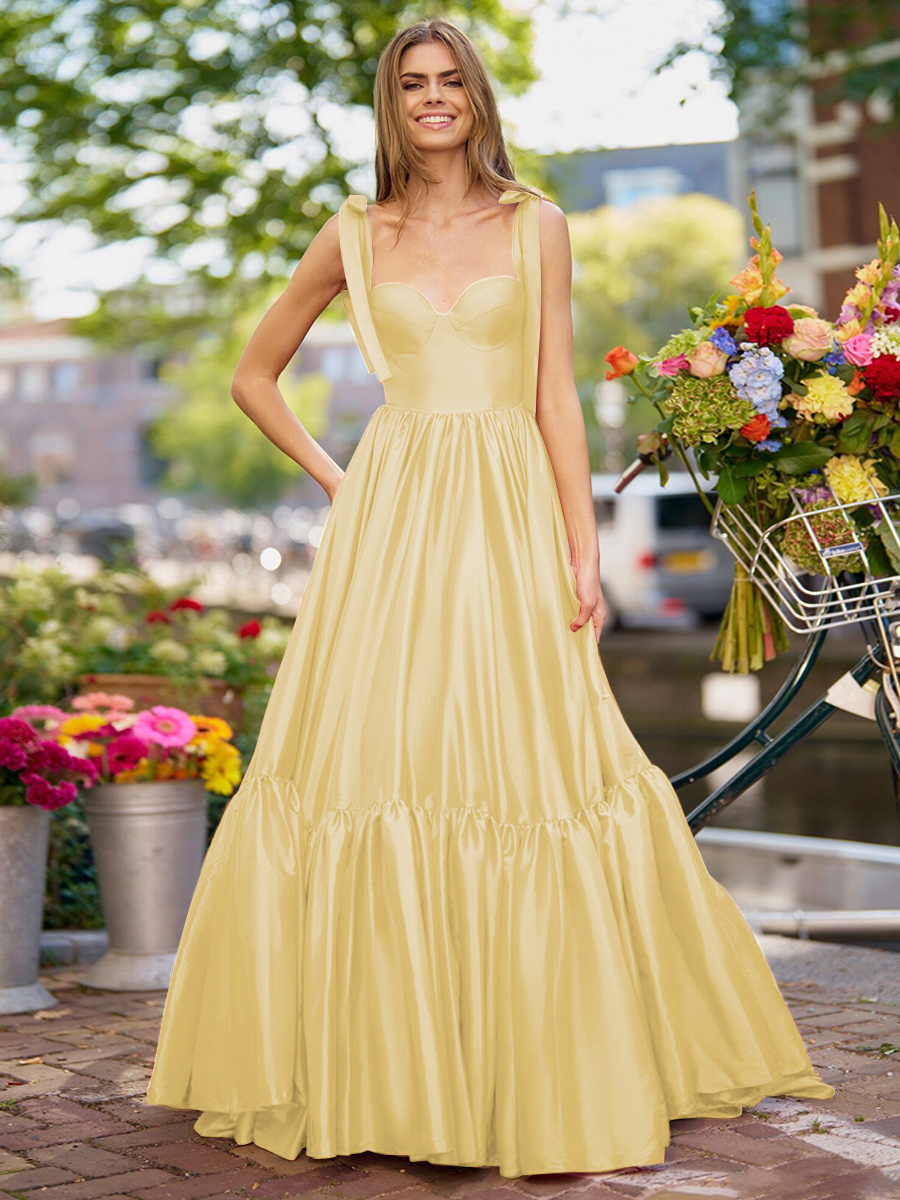 プロムドレス Aライン 恋人ネック 弾性シルクのようなサテン ノースリーブ フリル 結婚式のゲストドレス