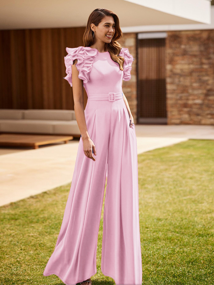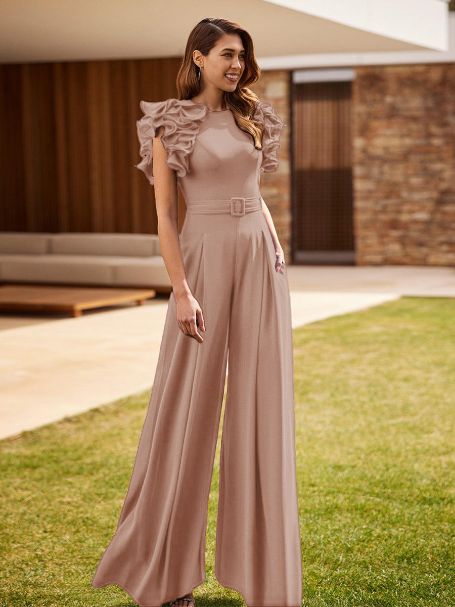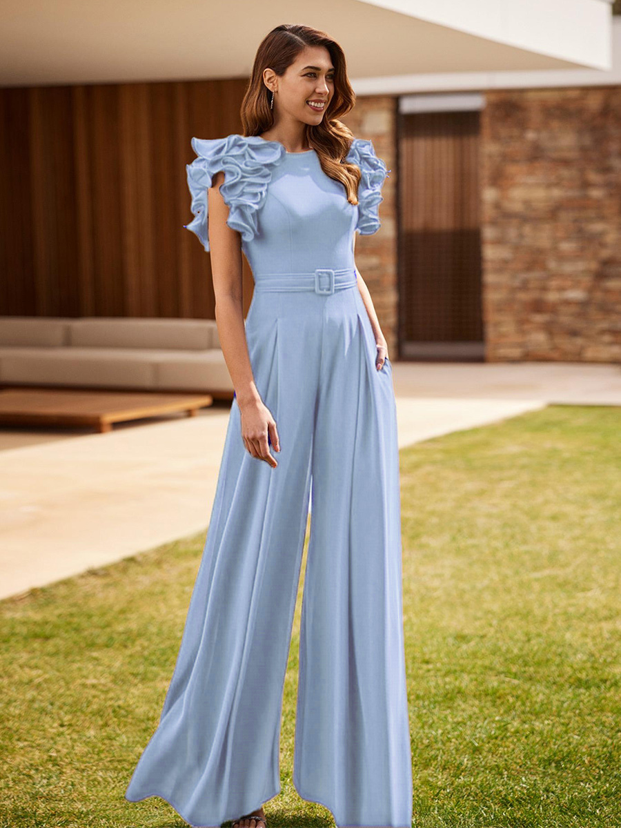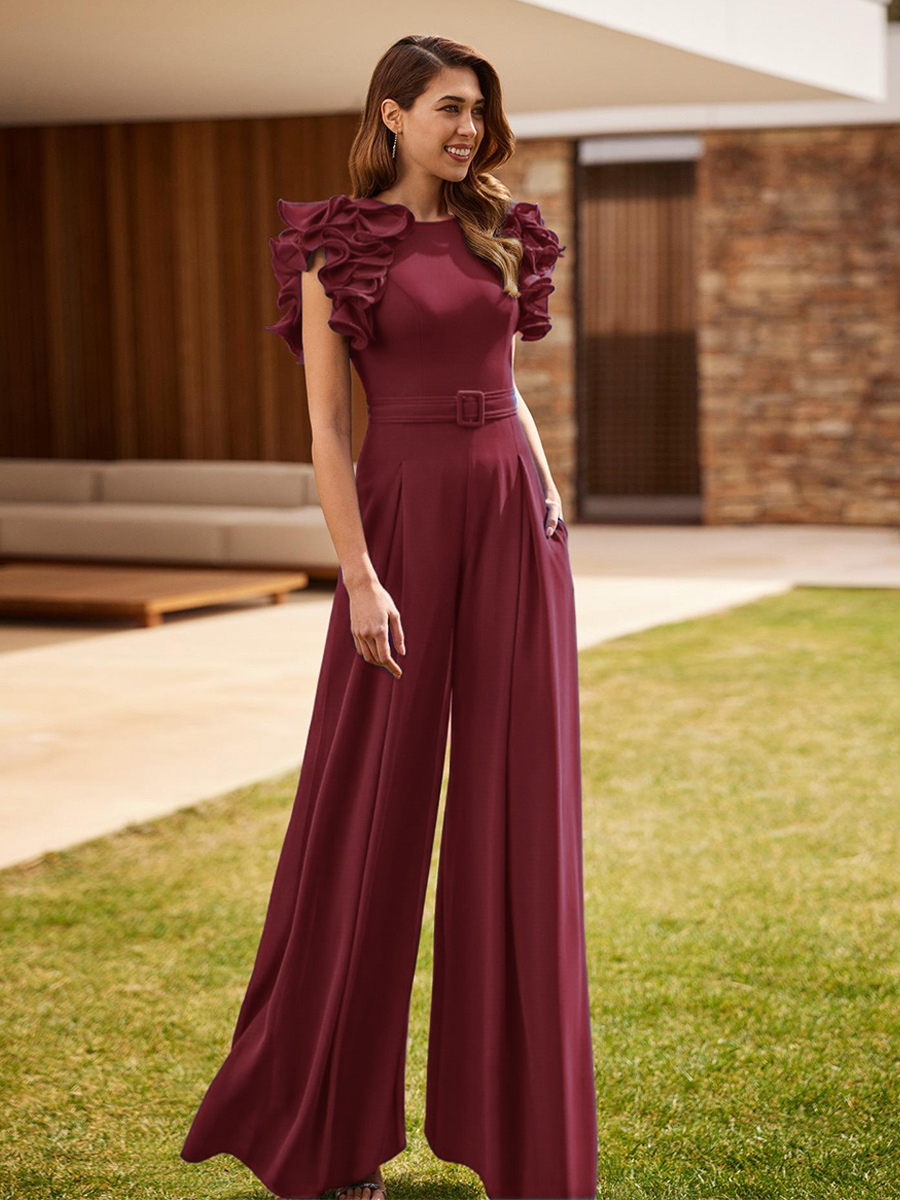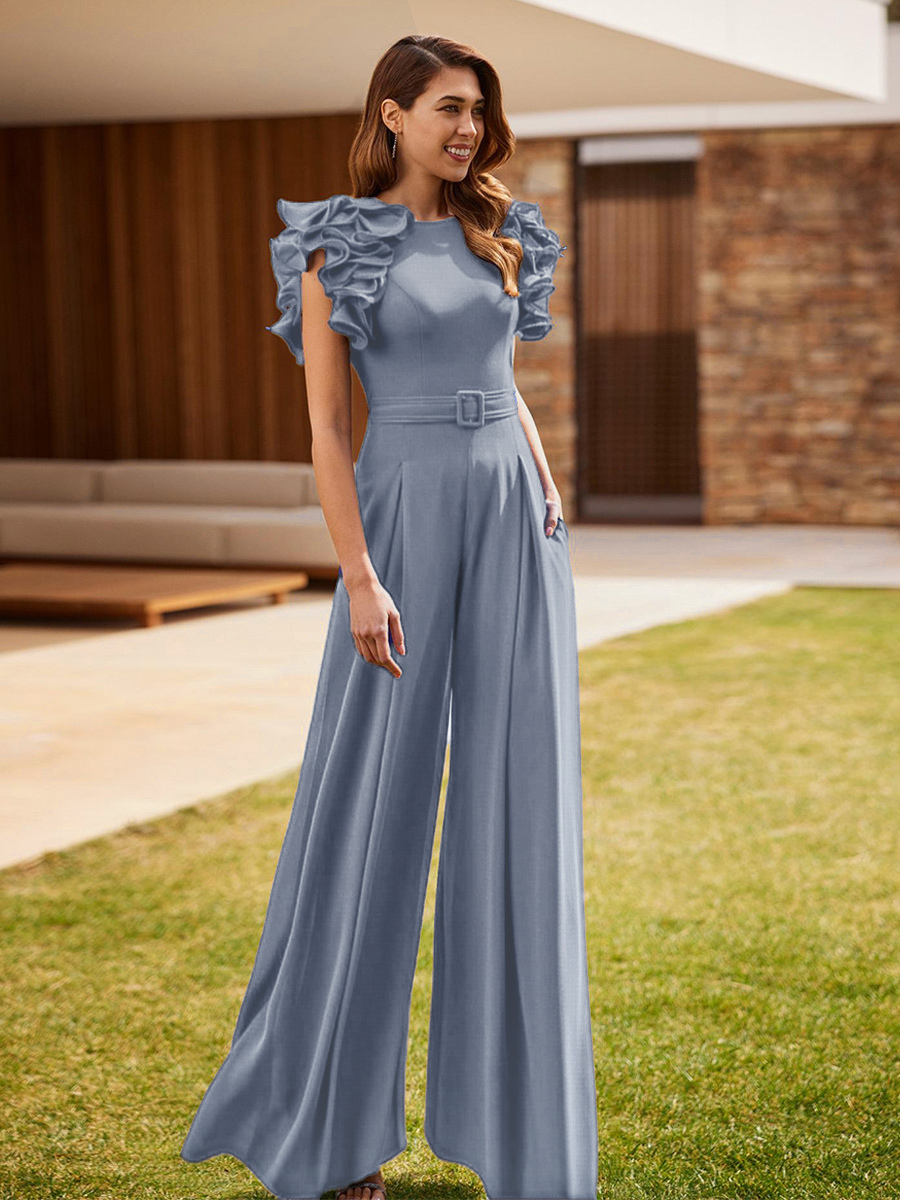 花嫁の母親のためのパーティードレス ジュエルネック ノースリーブ ジャンプスーツ フリル ウェディングゲストドレス