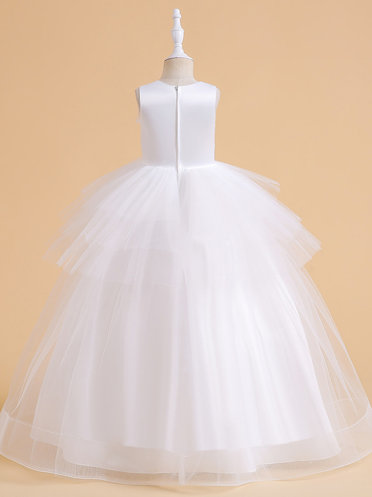 ホワイトフラワーガールドレス 特別な日のためのドレス シャンパンチュール ノースリーブ ジュエルネック フラワーガールドレス