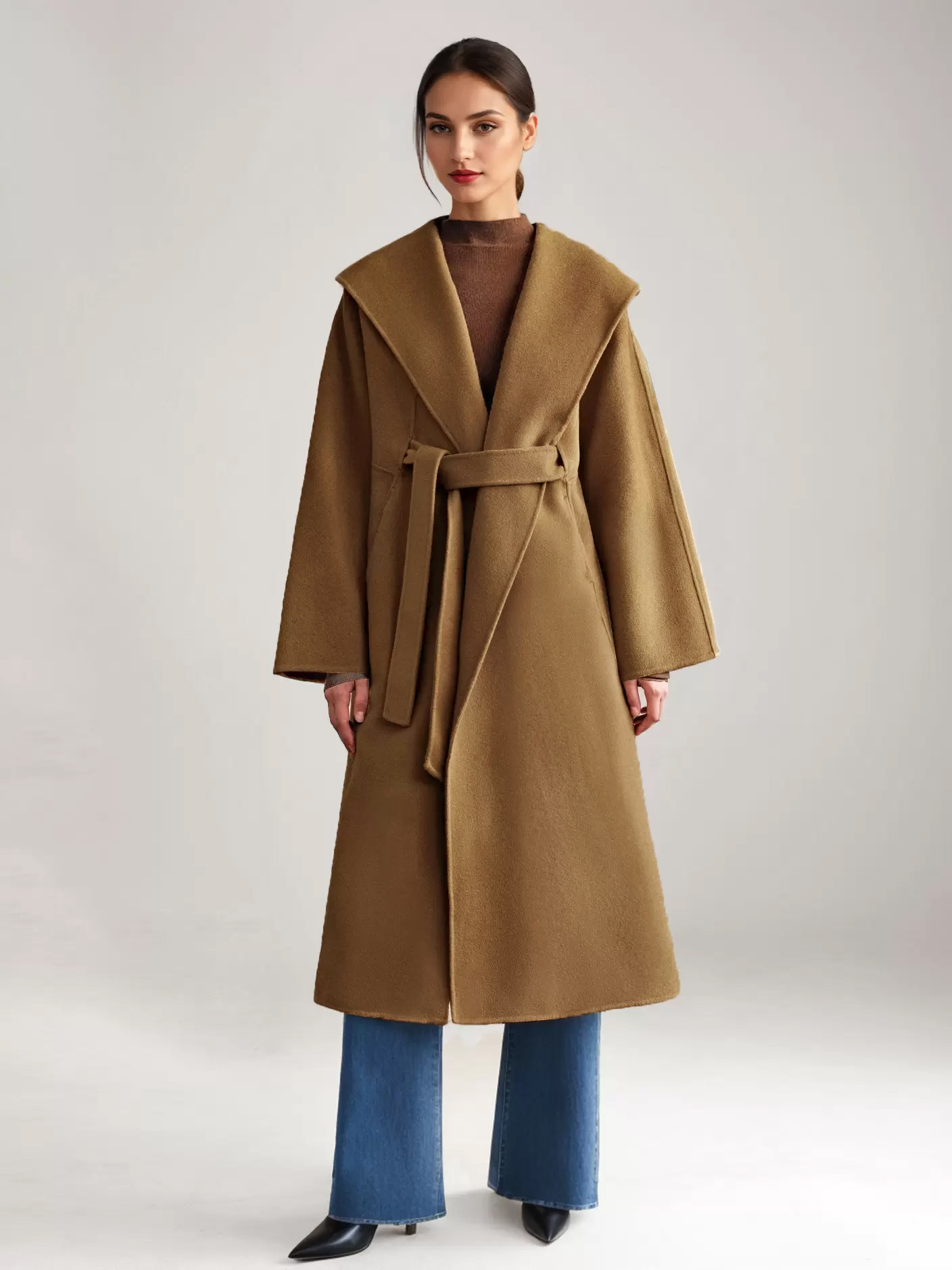 ウール カシミア ブレンド コート ホワイト ワイドラペル ダブルフェイス ベルト付き 冬アウター レディース 2025