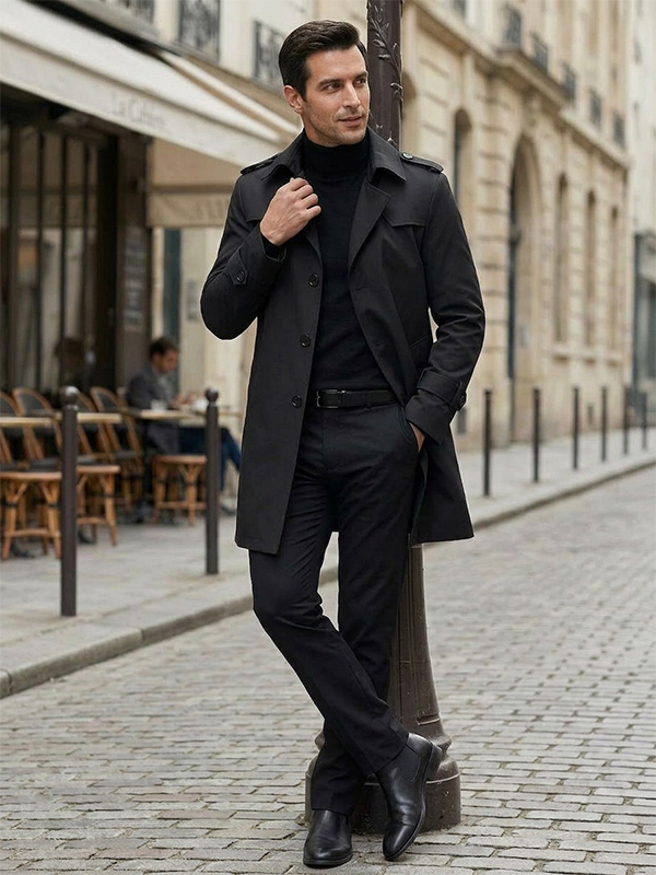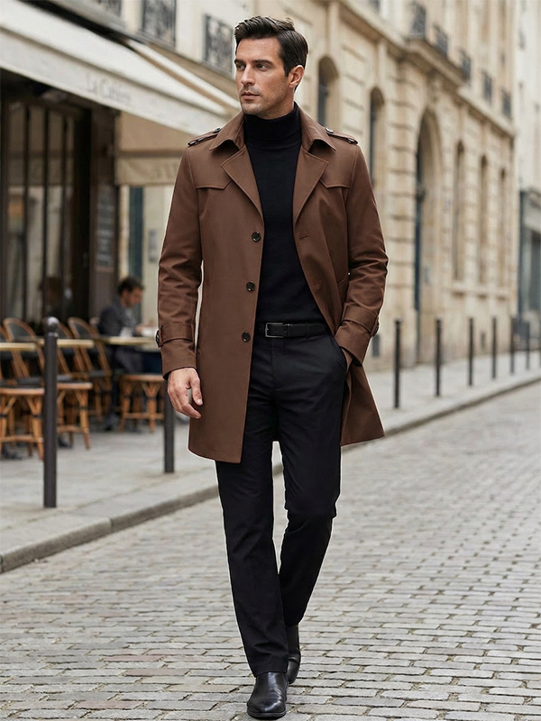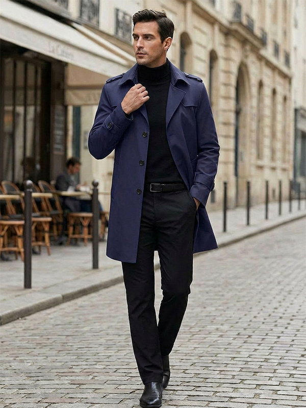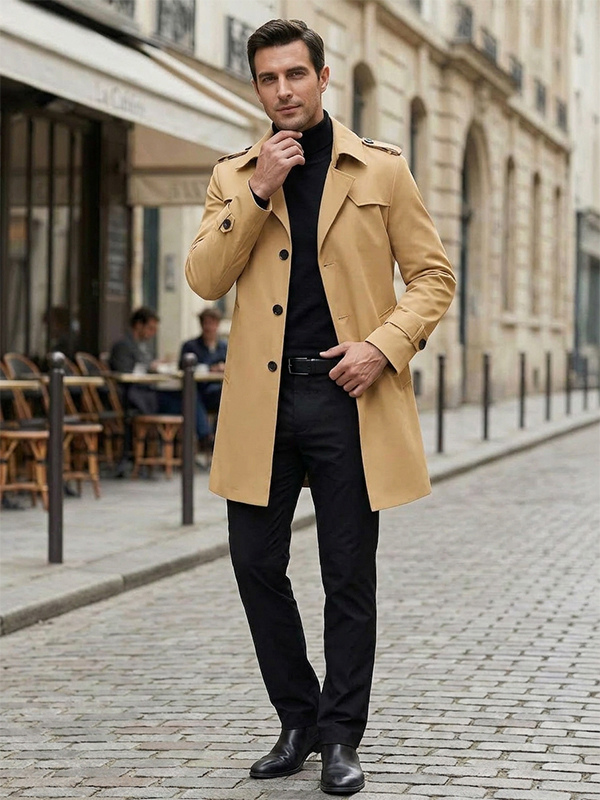 メンズ ウィンドブレーカー シンプル ミドル丈 ウィンドブレーカー ジャケット ビジネス ラペル トレンチコート