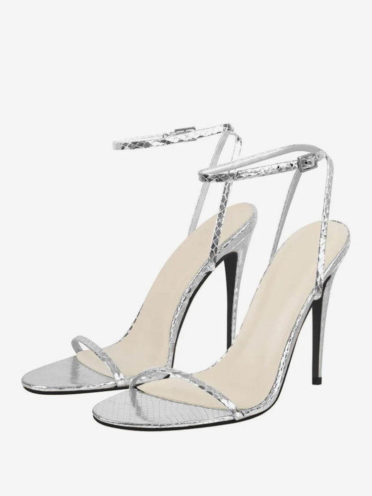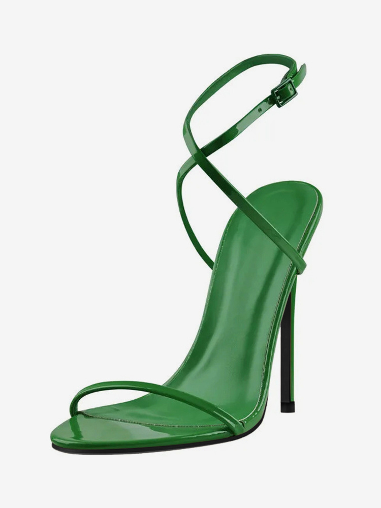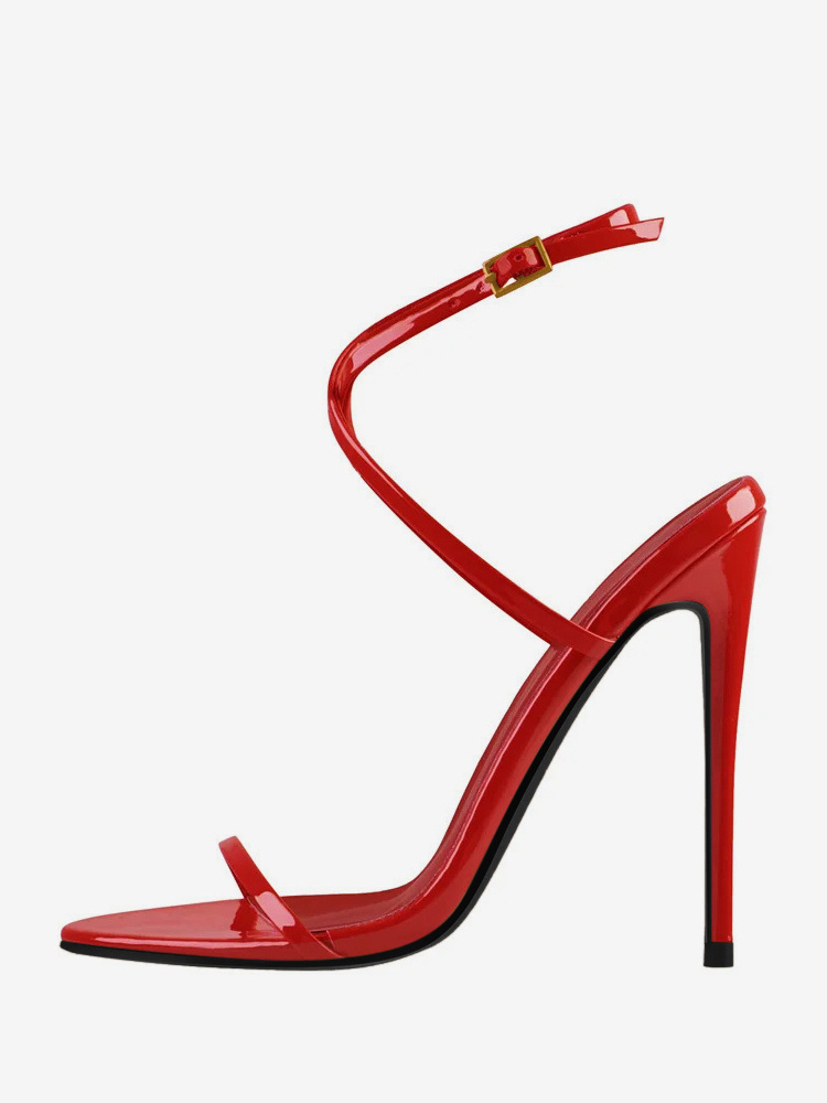レディースヒールサンダル レッド オープントゥ クリスクロス スティレットヒール パーティーシューズ