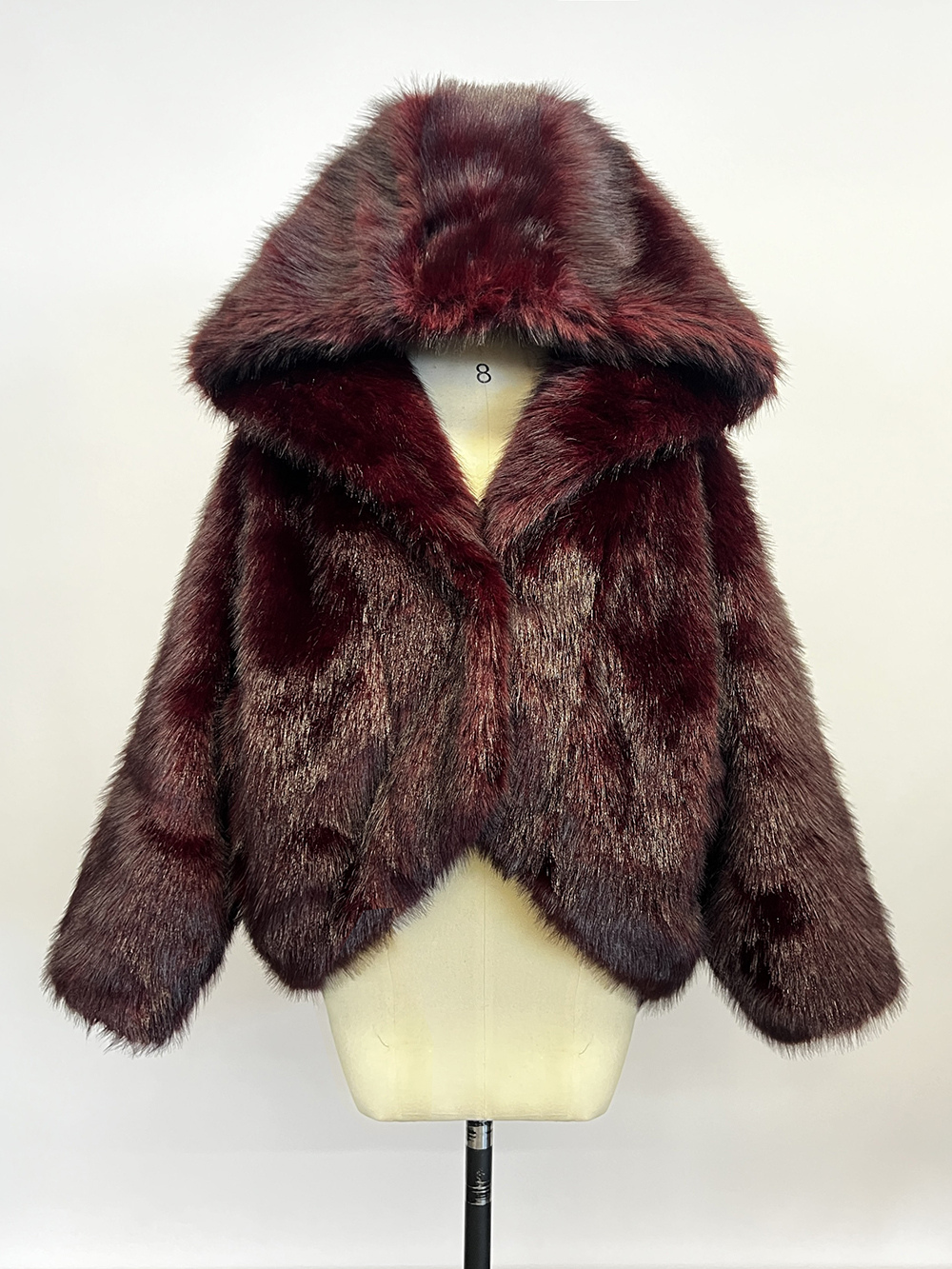 フード付きフェイクファーコート ハイローデザイン 冬用ジャケット レディース 2025