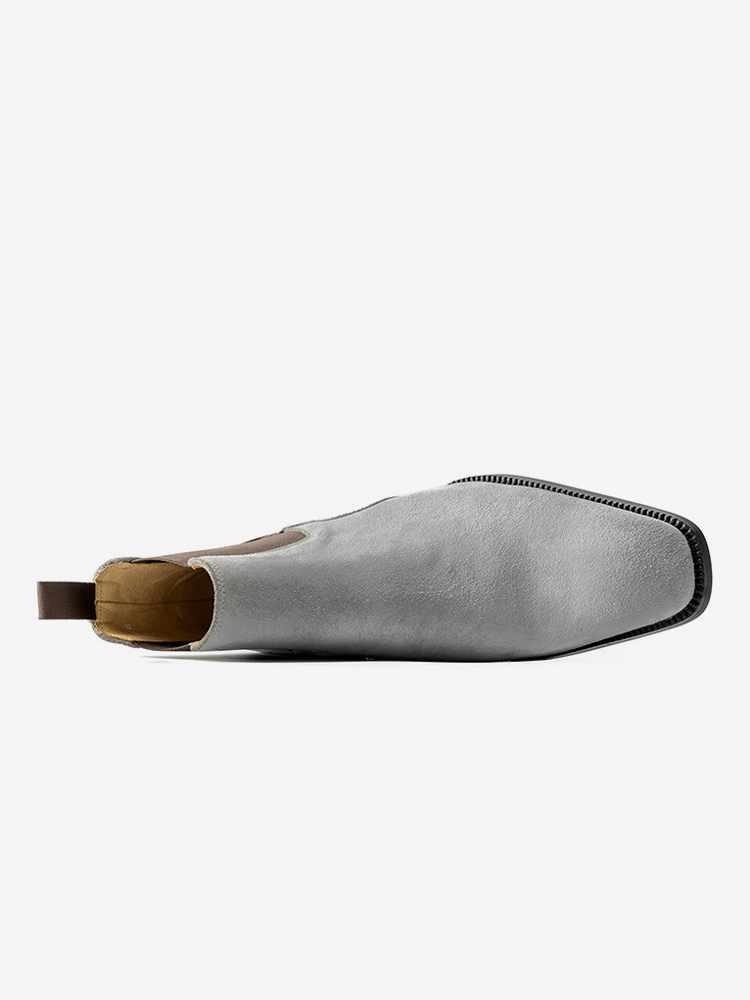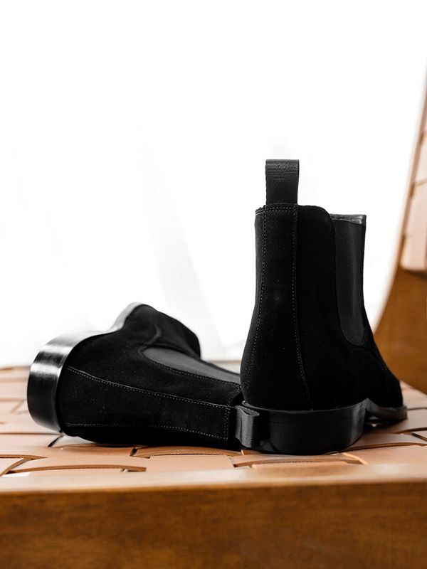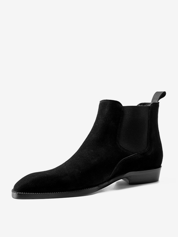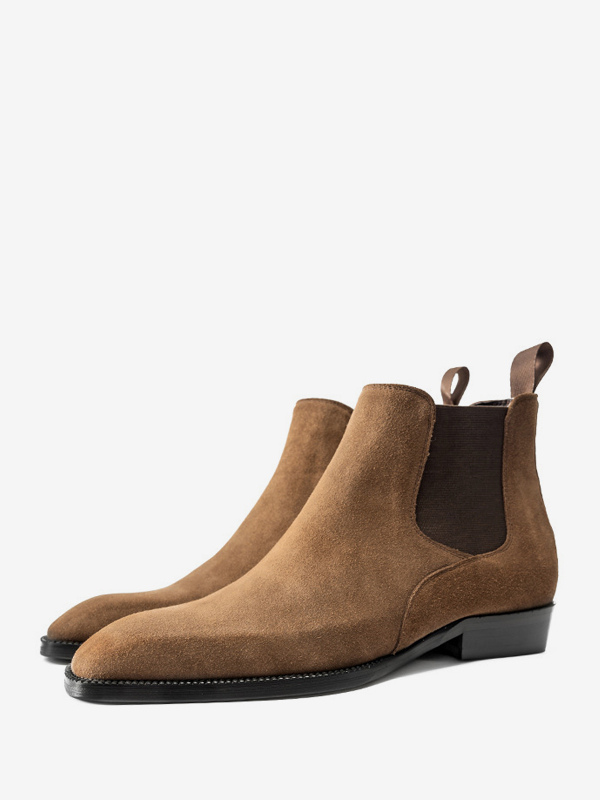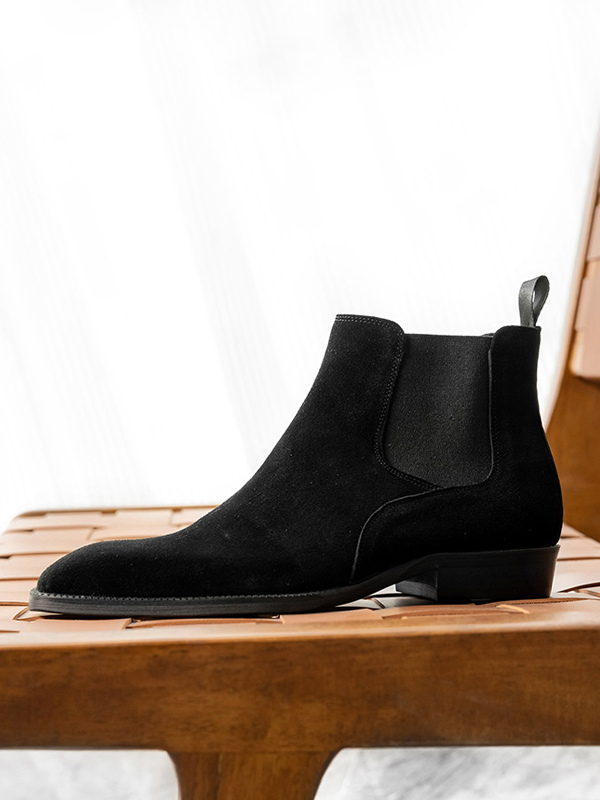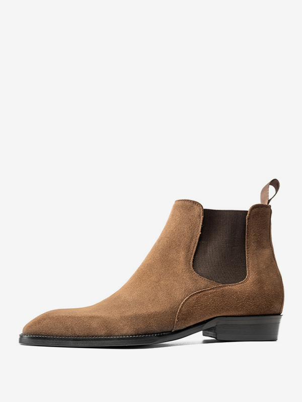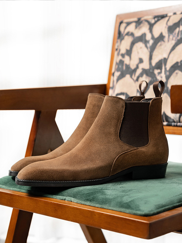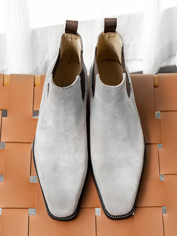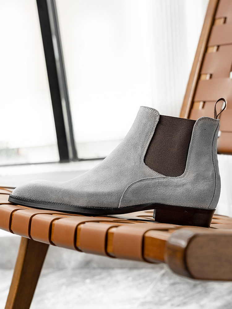 男性用グレースエードチェルシーブーツ レザーラウンドトゥアンクルブーツ