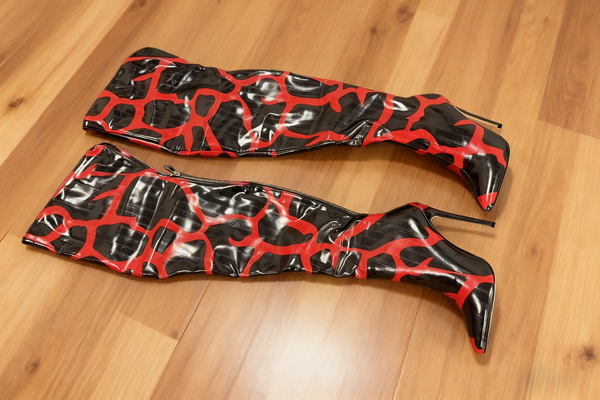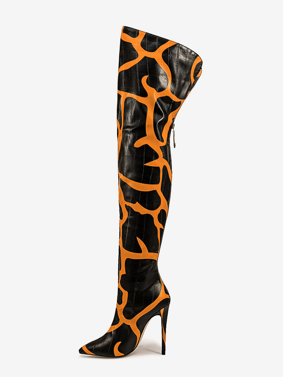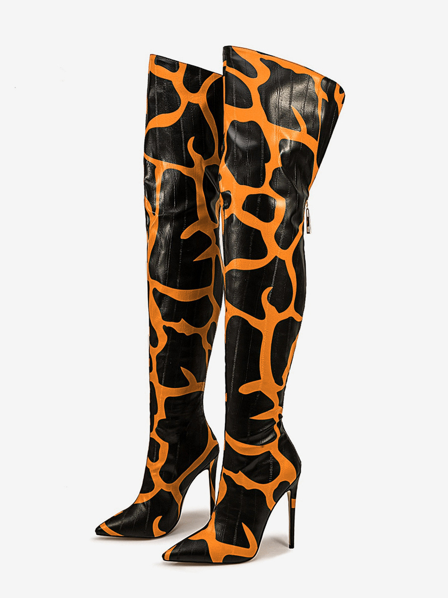 オーバーニーブーツ ポインテッドトゥ プリントハイヒール サイハイブーツ