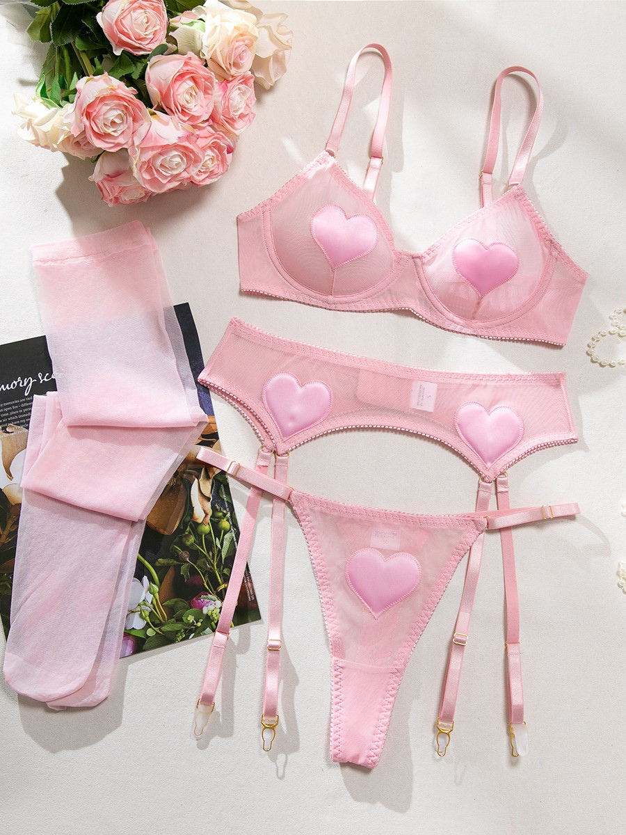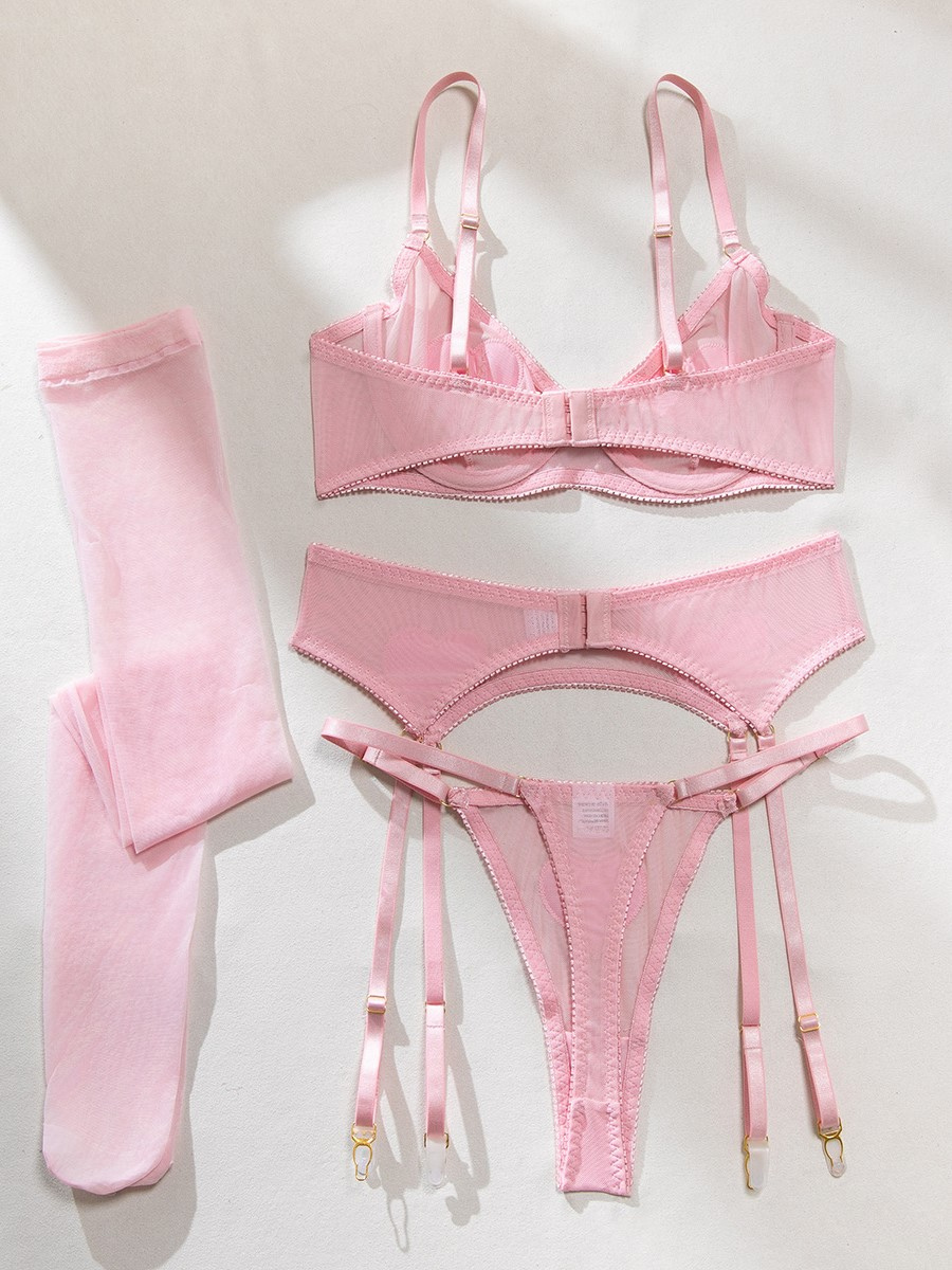 ブライダルレースランジェリー セクシーレッド 大人用ブラ&パンティ4点セット