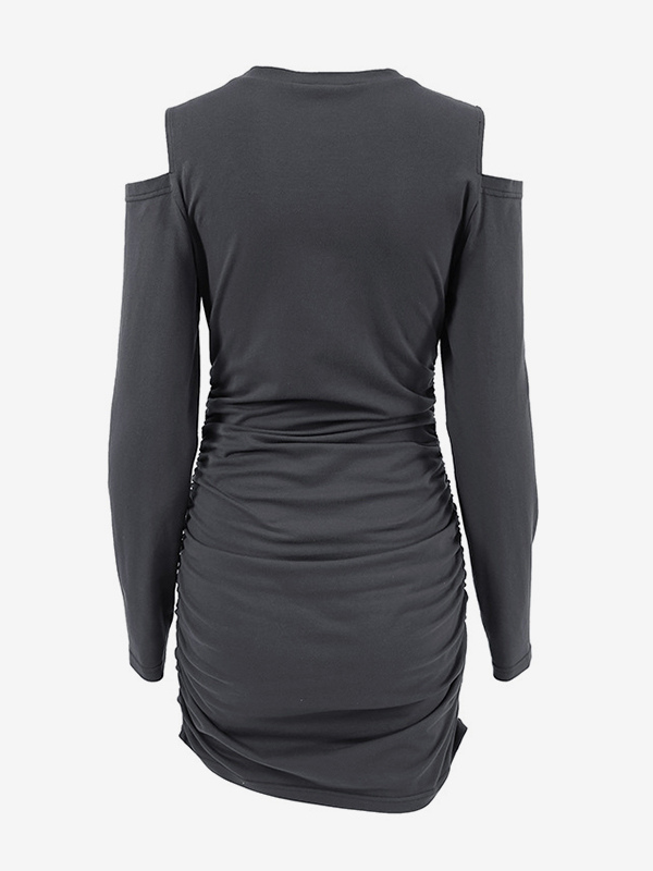 カットアウトショルダーのボディコンドレス、長袖、ジュエルネック、スリムフィット、セクシーなミニドレス、レディース 2025