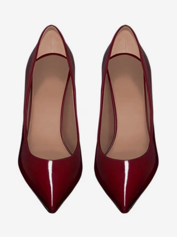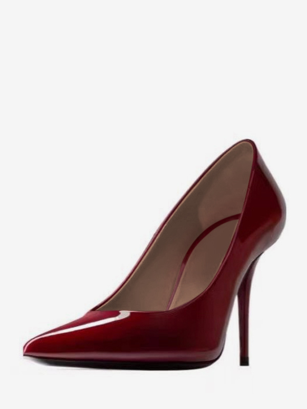 バーガンディハイヒールポインテッドトゥスリッポンドレスシューズ