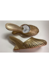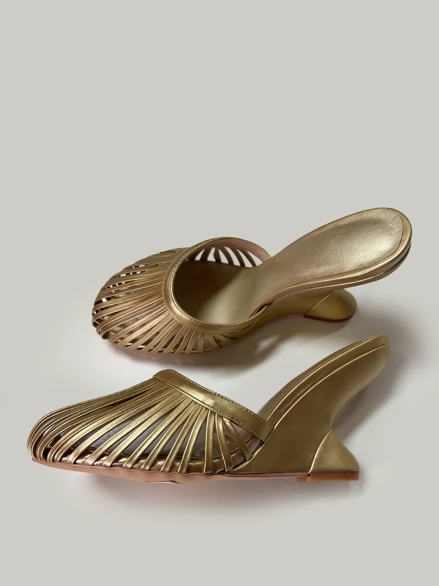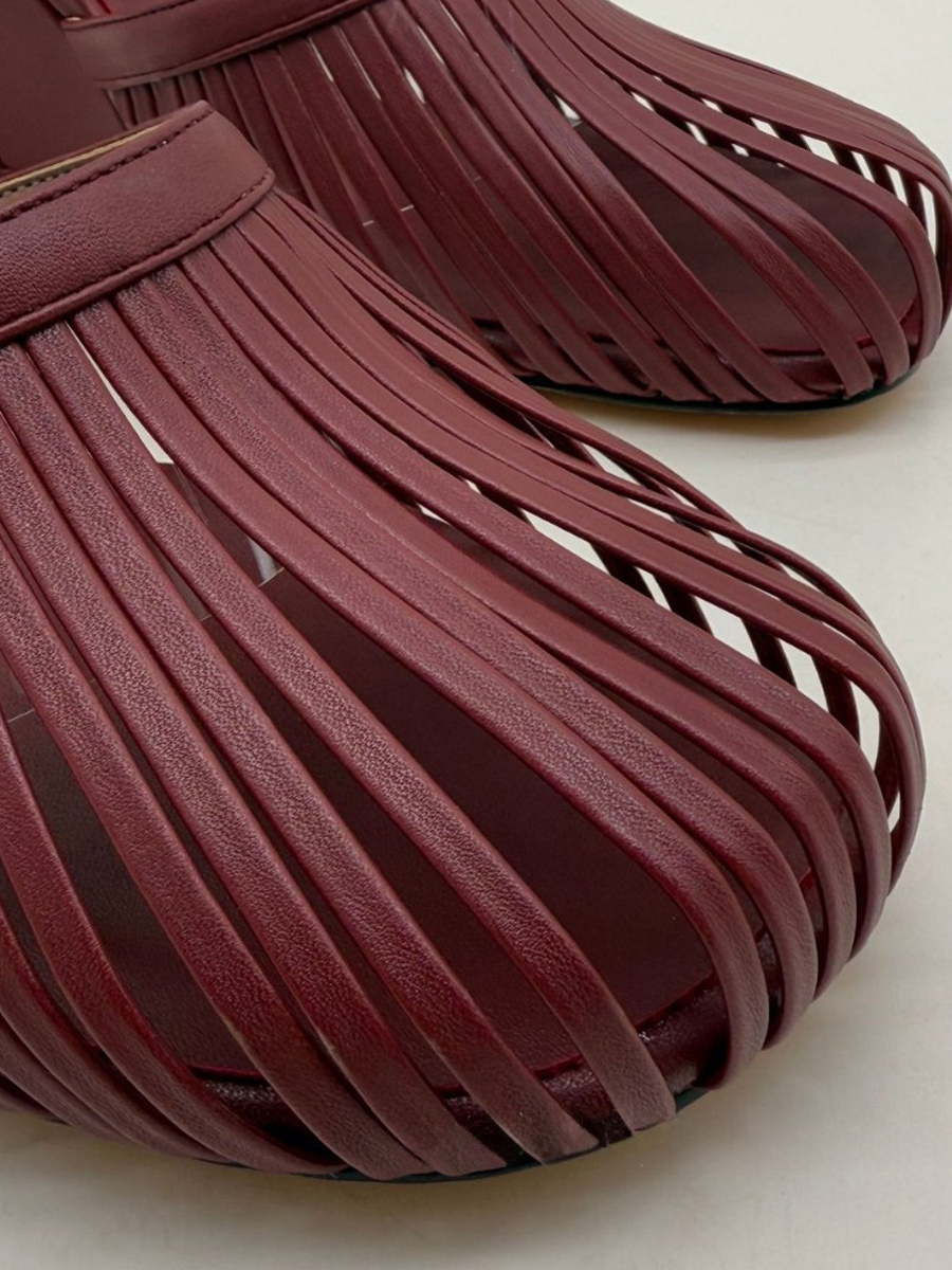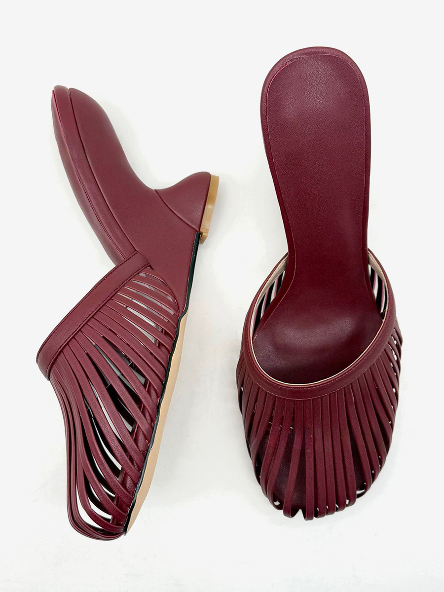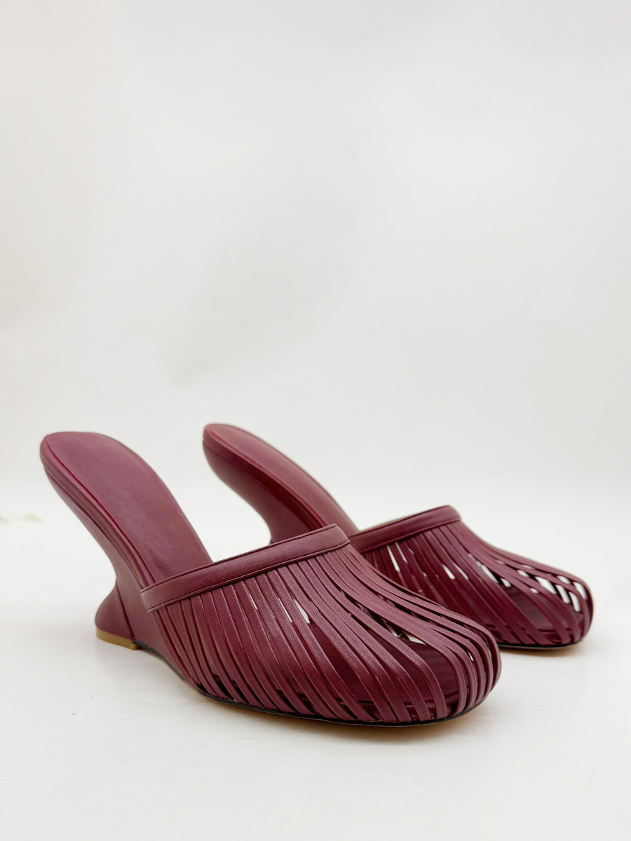 バーガンディ ウェッジサンダル ラウンドトゥ カットアウト バックレス サンダルシューズ