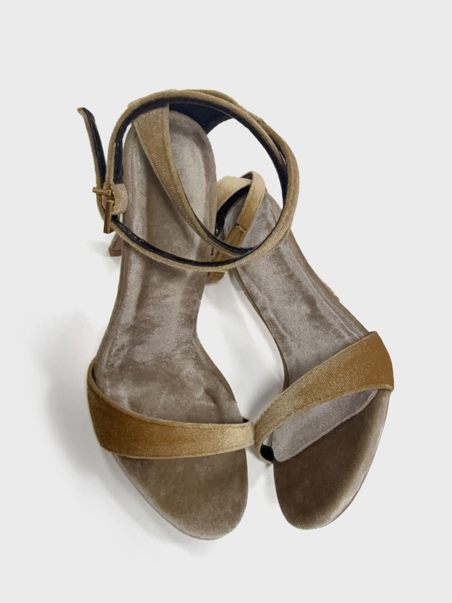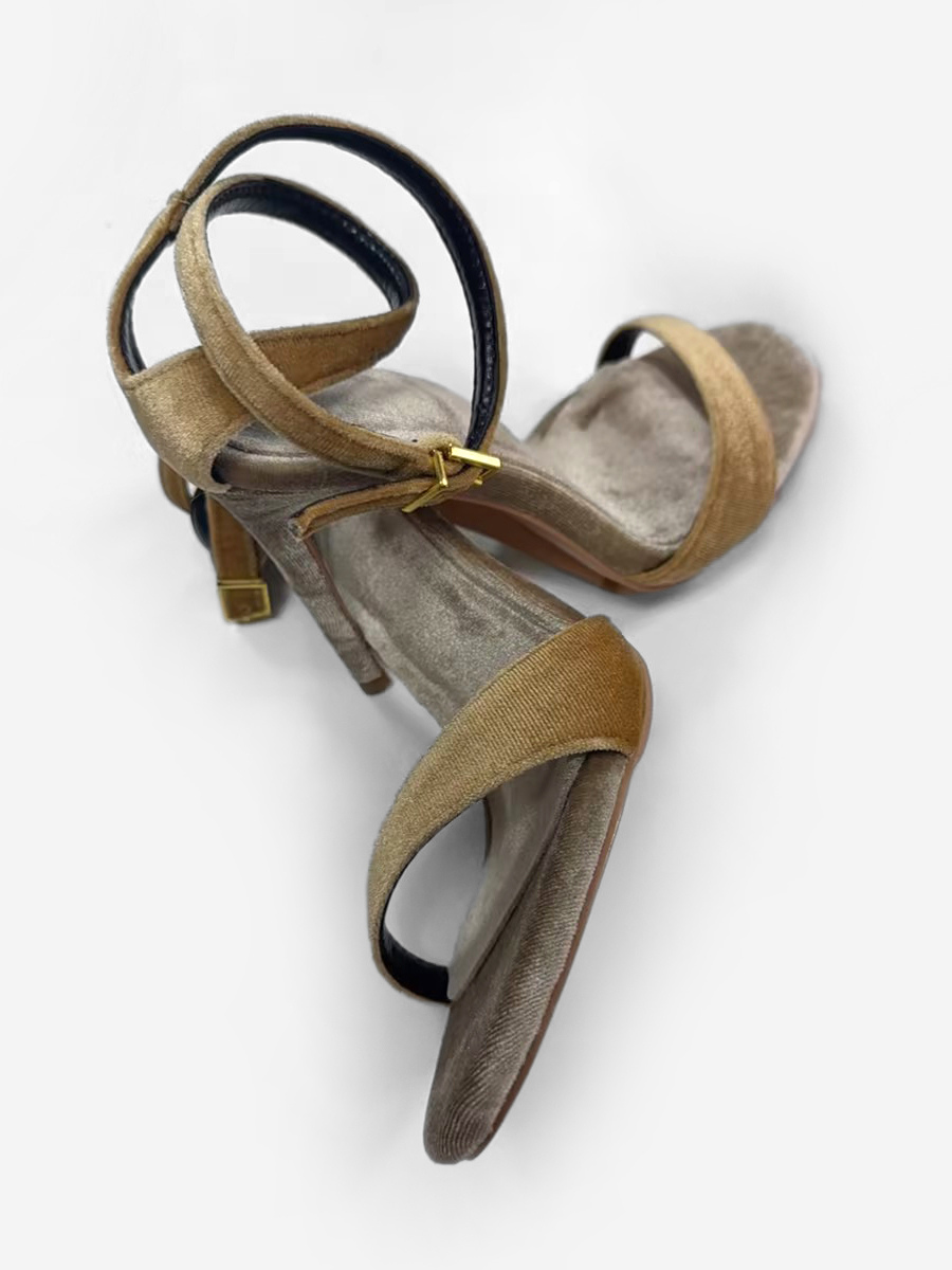 ベルベットハイヒールサンダル オープントゥ クリスクロス パーティーシューズ