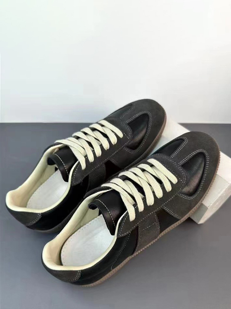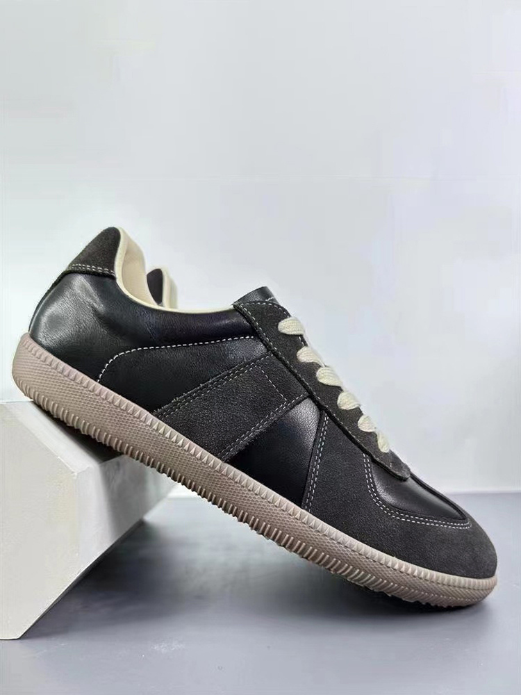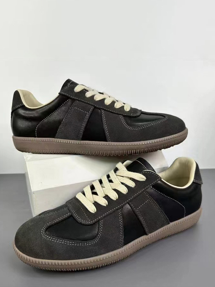 Embrace minimalist retro style with these Men's German Army Trainers (GAT), inspired by the iconic 1970s military sneakers reimagined for contemporary streetwear. Crafted from premium white leather with contrasting grey suede panels, these low-profile sneakers feature the signature gum rubber sole for authentic vintage appeal. The breathable textile lining and padded collar ensure all-day comfort, while the clean silhouette pairs effortlessly with everything from jeans to tailored trousers. Originally designed for Bundeswehr officers, these timeless kicks now deliver understated cool to urban explorers and design enthusiasts alike.