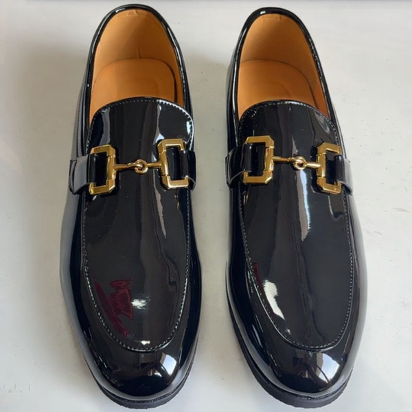 Step into high-shine sophistication with these Men's Horsebit Loafers, crafted from glossy patent leather for a head-turning finish. The iconic metal bit detail elevates the classic round-toe silhouette, while the slip-on design offers effortless elegance. Featuring a cushioned insole and flexible rubber sole, these loafers deliver all-day comfort without compromising on their polished appeal. Perfect for black-tie events, weddings, or adding a luxe touch to business attire, they pair seamlessly with tuxedos, tailored suits, or dress trousers.