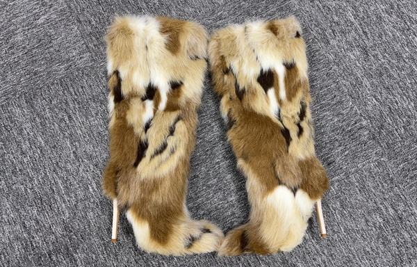 フェイクファーニーハイブーツ レディース ポインテッドトゥ ハイヒールブーツ
