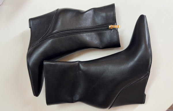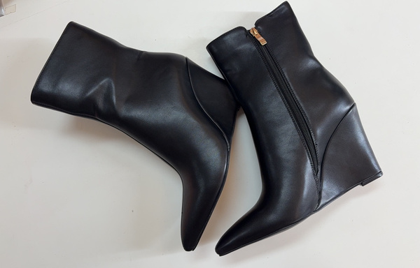 レディース ブラック ウェッジブーツ ポインテッドトゥ ジップアップ アンクルブーツ