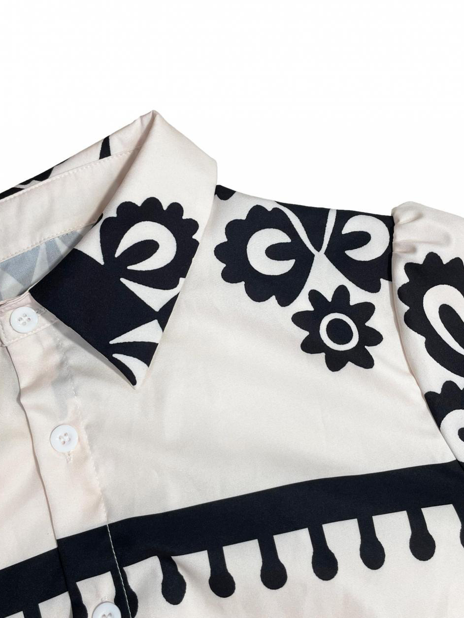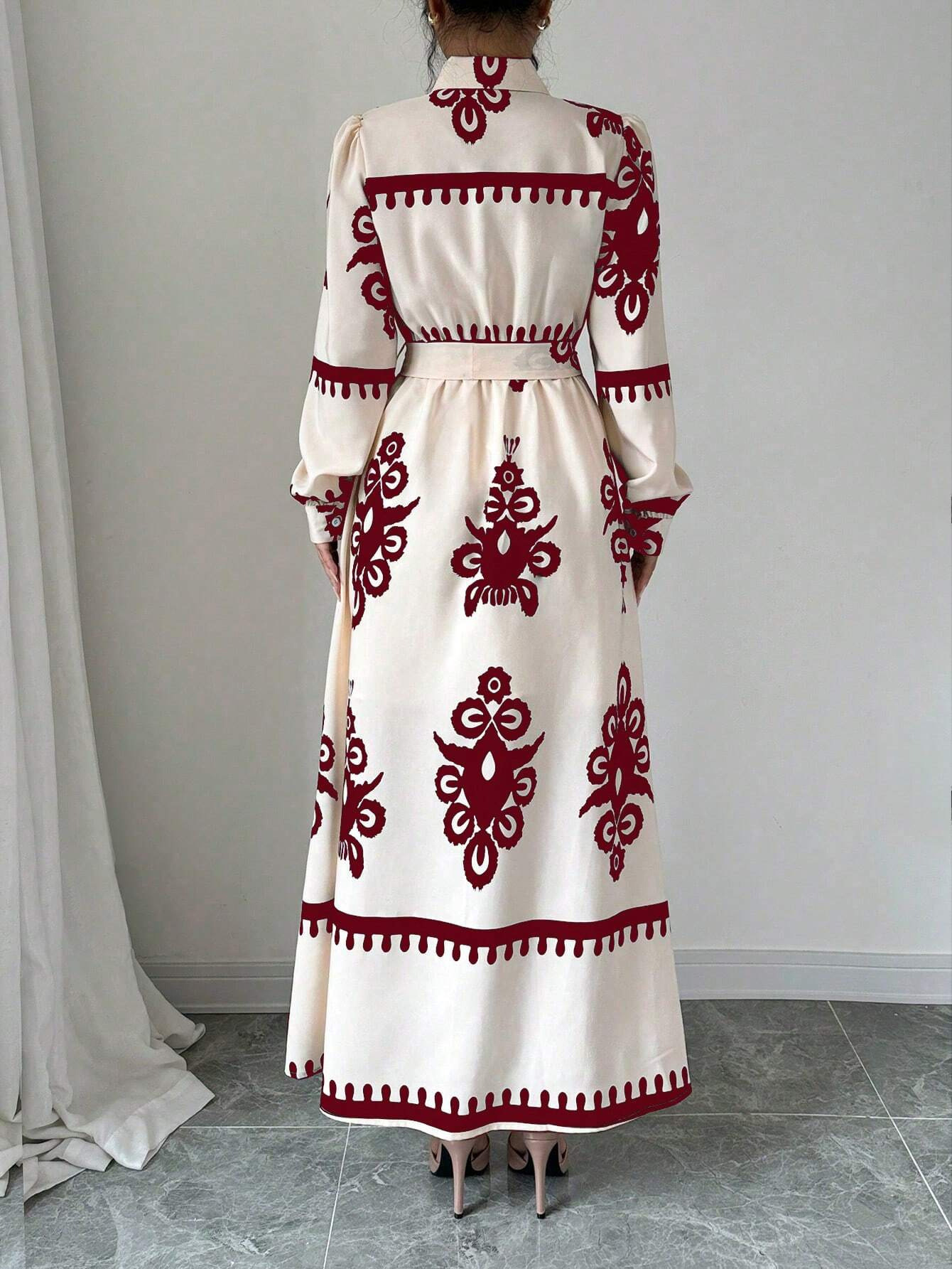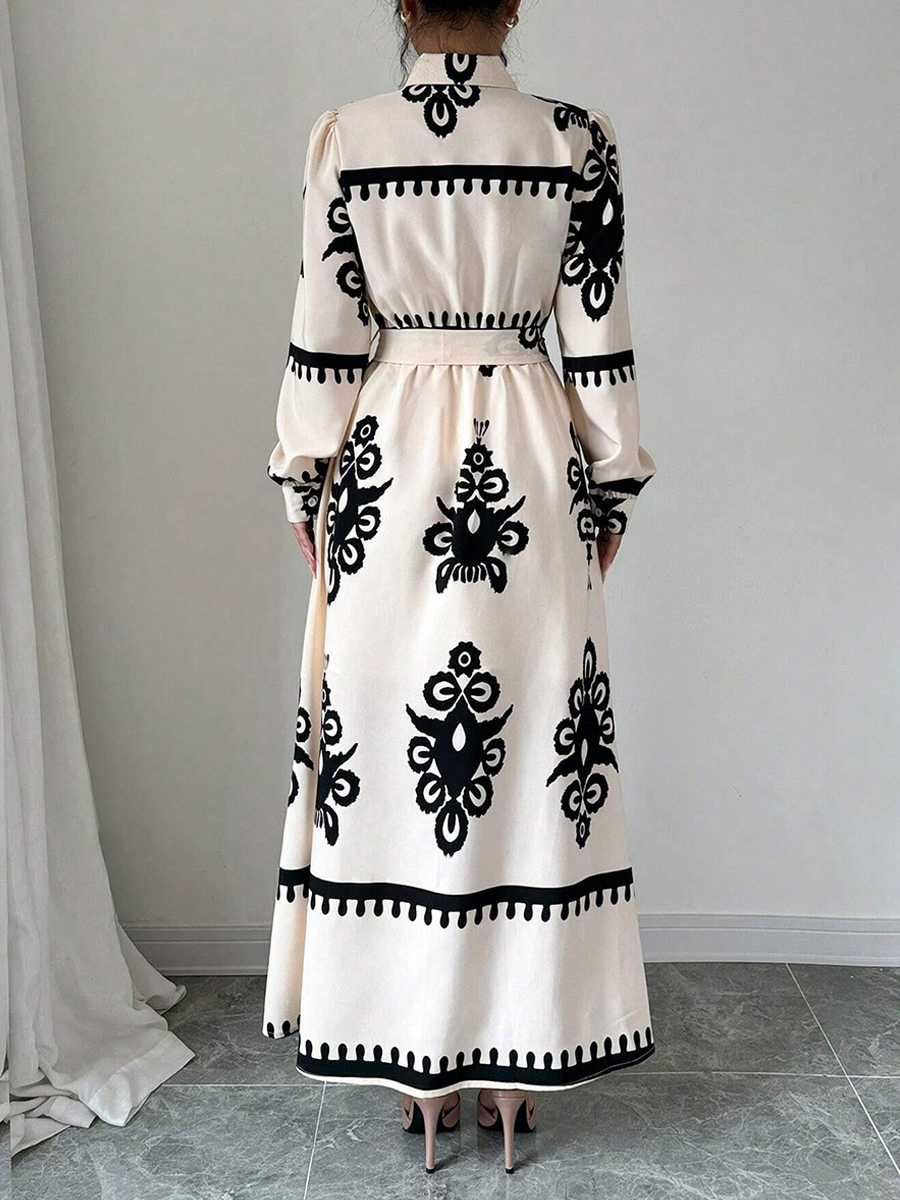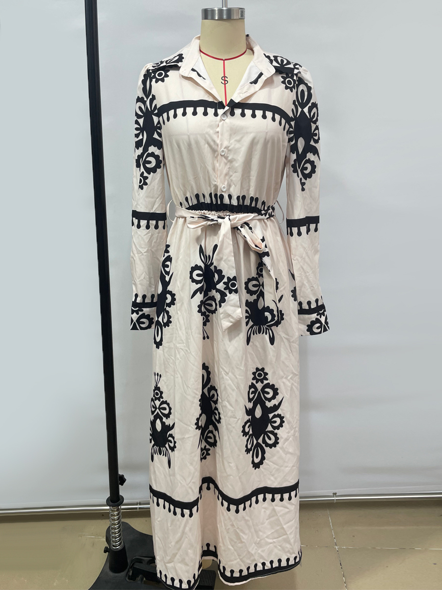 抽象的なプリントとベルトが付いた女性用マキシシャツドレス 2025
