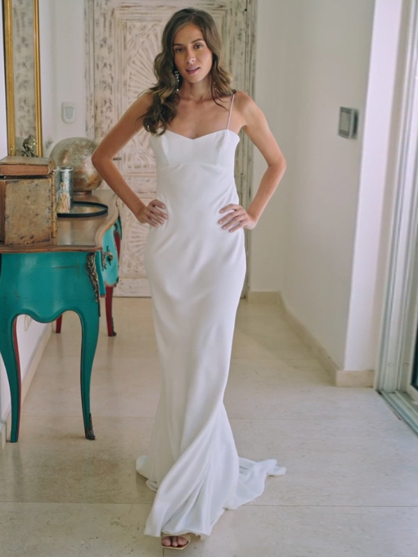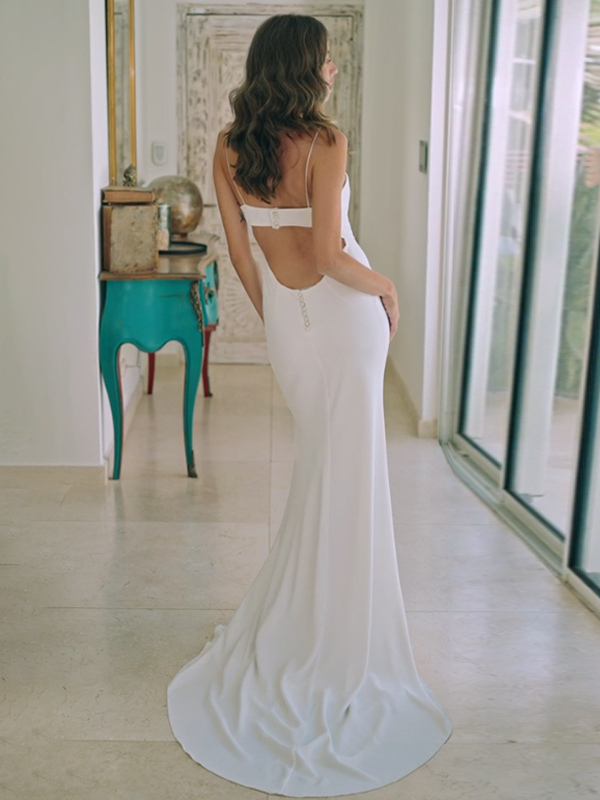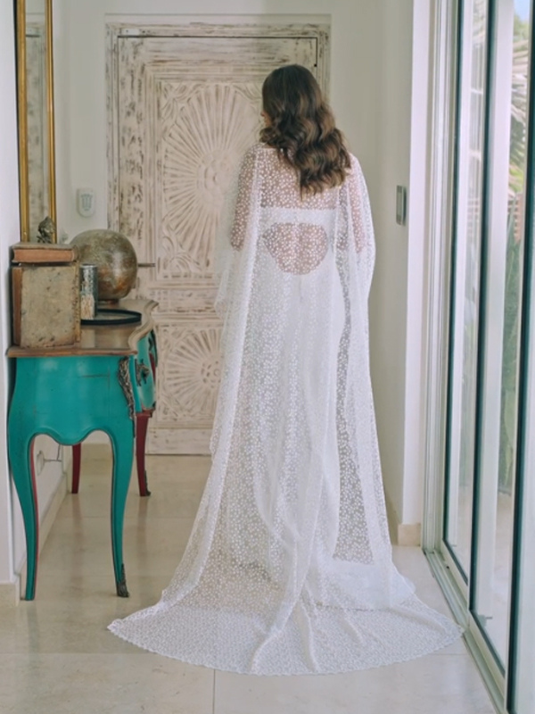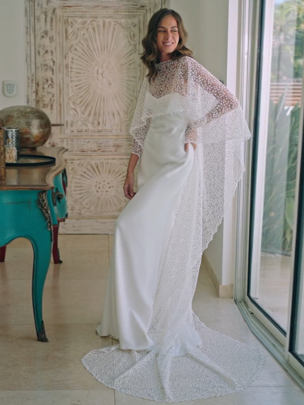 ツーピースウェディングドレス レース レースデザインネックライン ツーピーストレーン付きウェディングドレス 機能的なボタン ハーフスリーブ ロング アイボリー