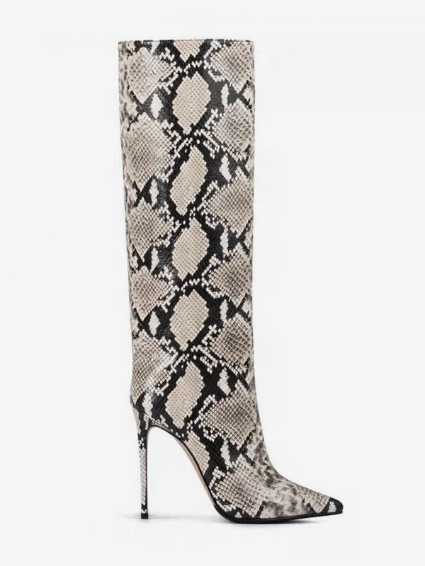 レディースニーハイブーツ スネーク柄 ポインテッドトゥ ハイヒールブーツ