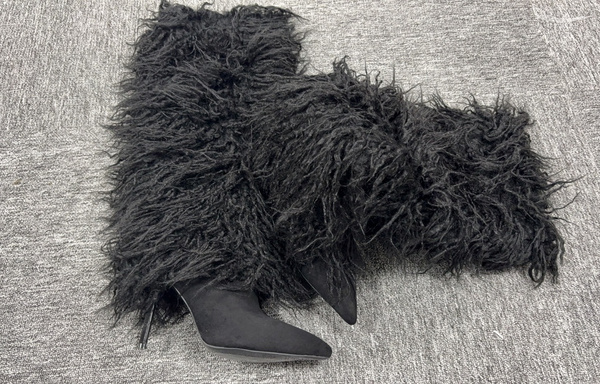 レディースニーハイブーツ フェイクファー ポインテッドトゥ ハイヒール ニーレングスブーツ