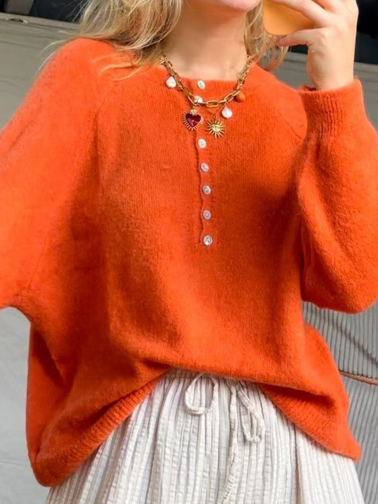 カジュアルオーバーサイズヘンリーセーター(ラグランスリーブ、レディース)2025年