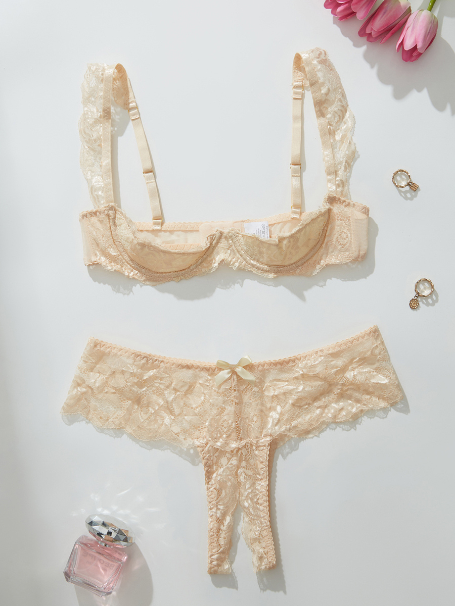 クロッチレス カップレス 2ピースランジェリー リボン レッド ブラ パンティセット