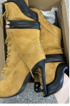 スエードミッドカーフブーツ レディース ポインテッドトゥ レースアップ ハイヒールブーツ