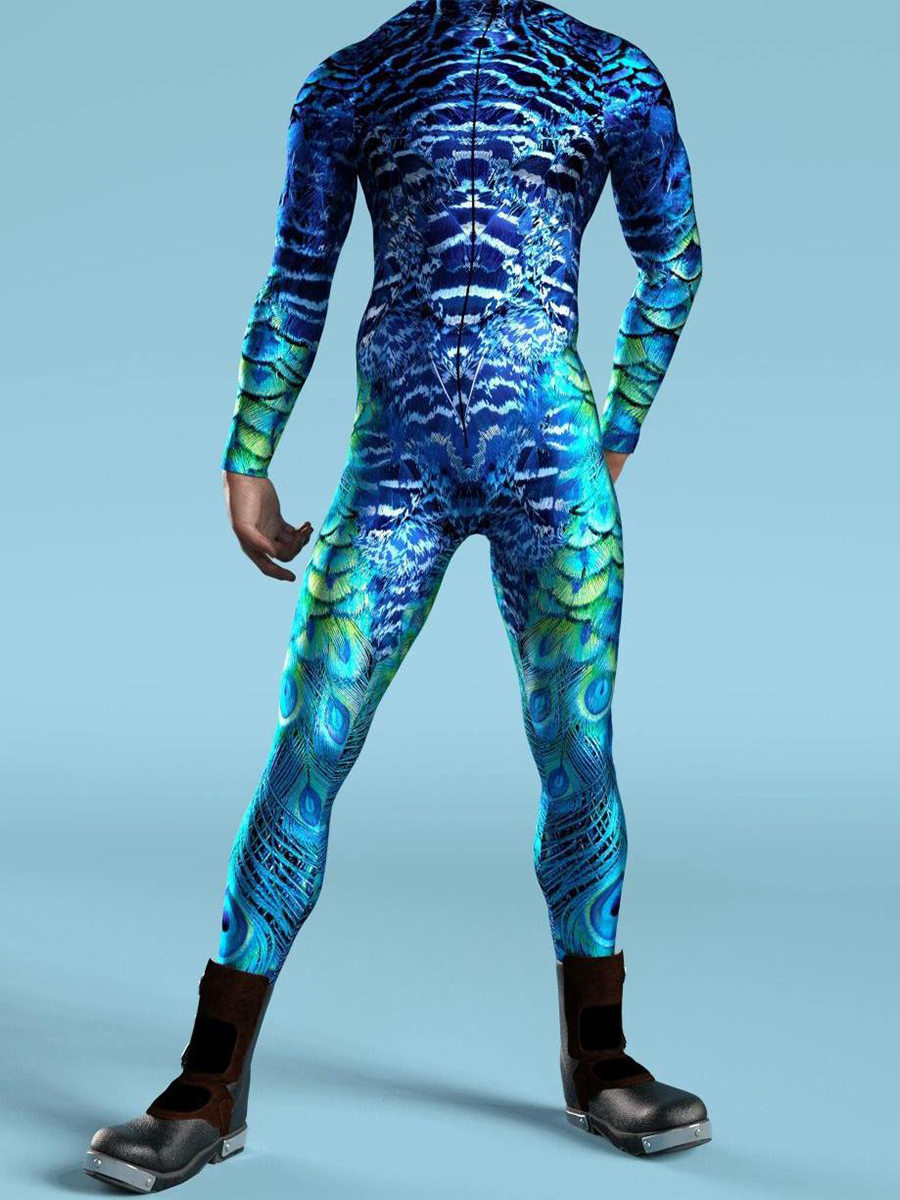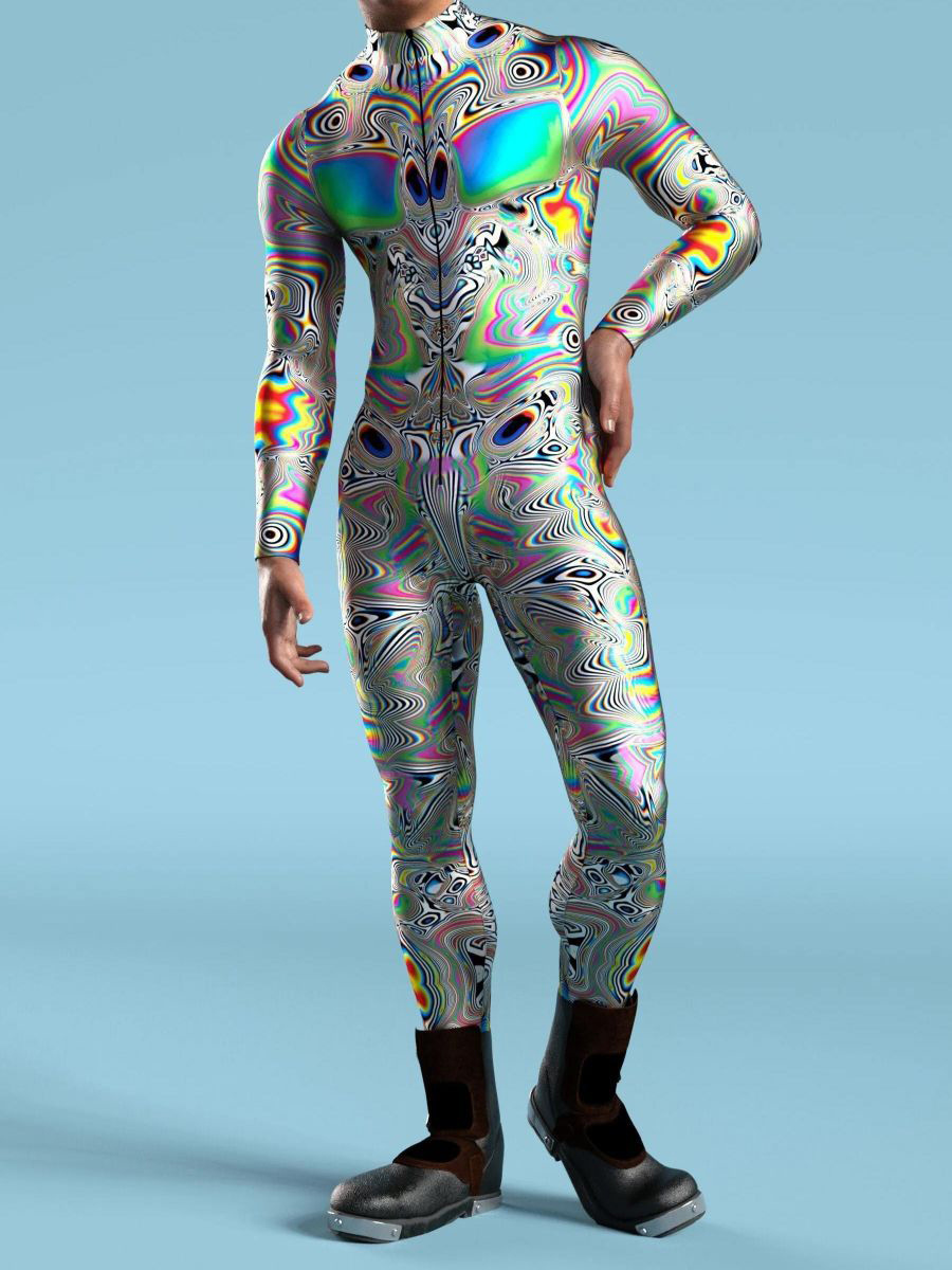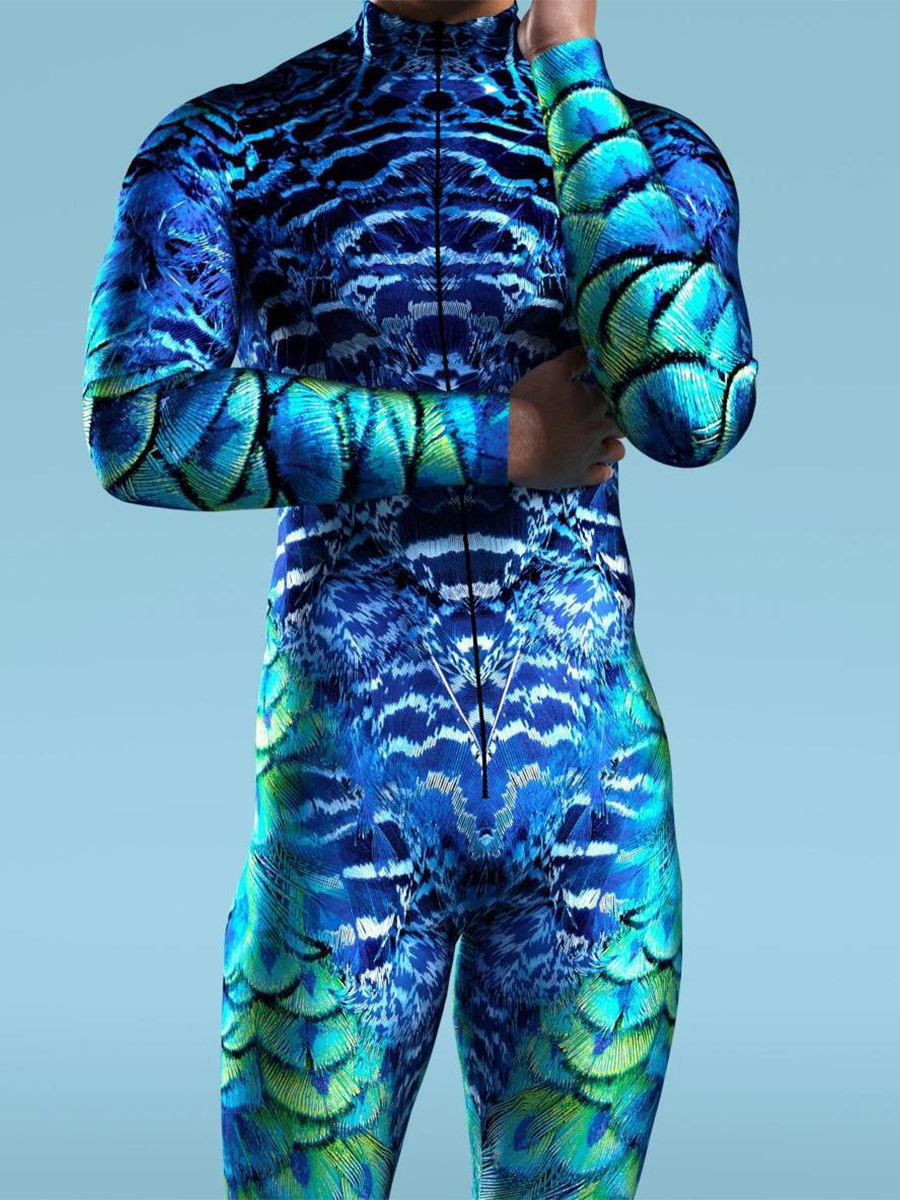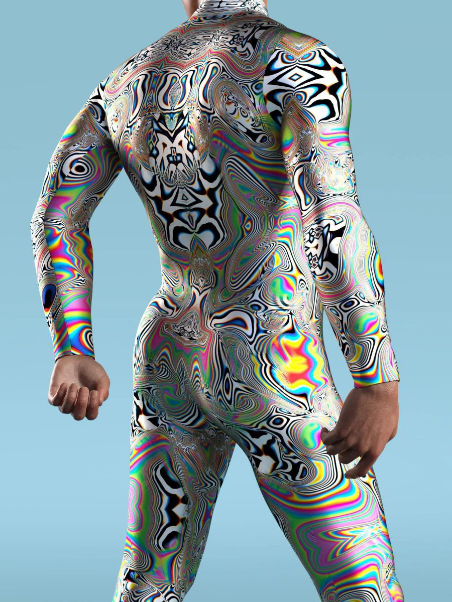 This zebra camouflage print bodysuit features a dynamic 3D optical illusion pattern, creating a form-fitting jumpsuit with striking visual depth and animalistic allure.