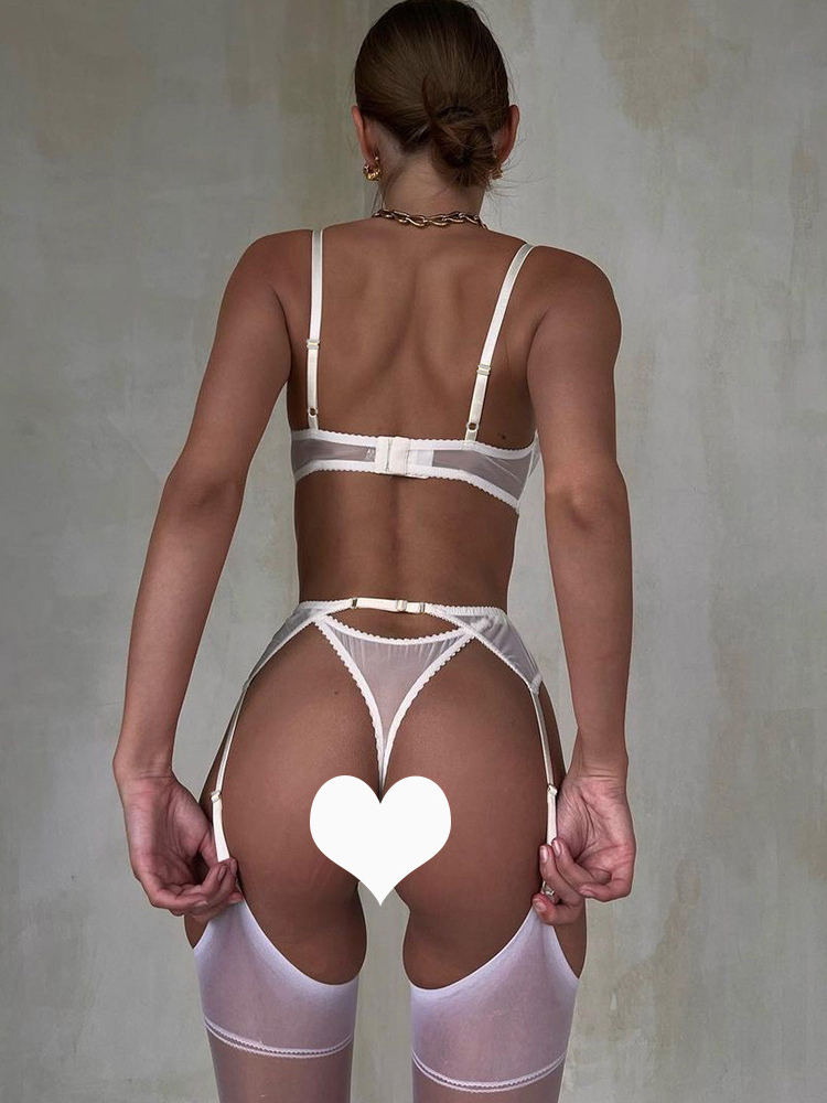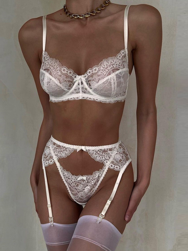ブライダル 3ピース ランジェリー レース ホワイト ブラ パンティ ガーターセット