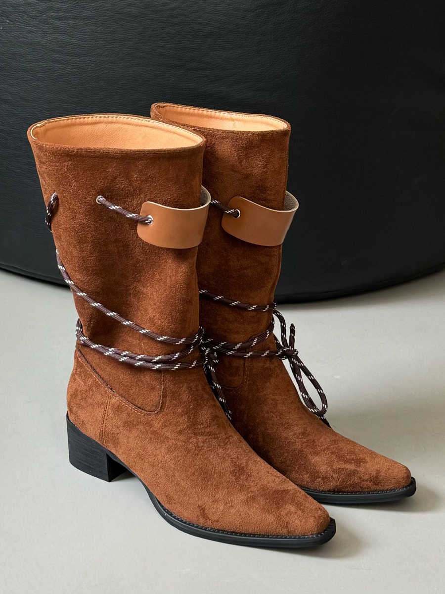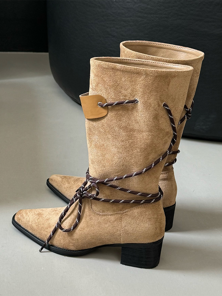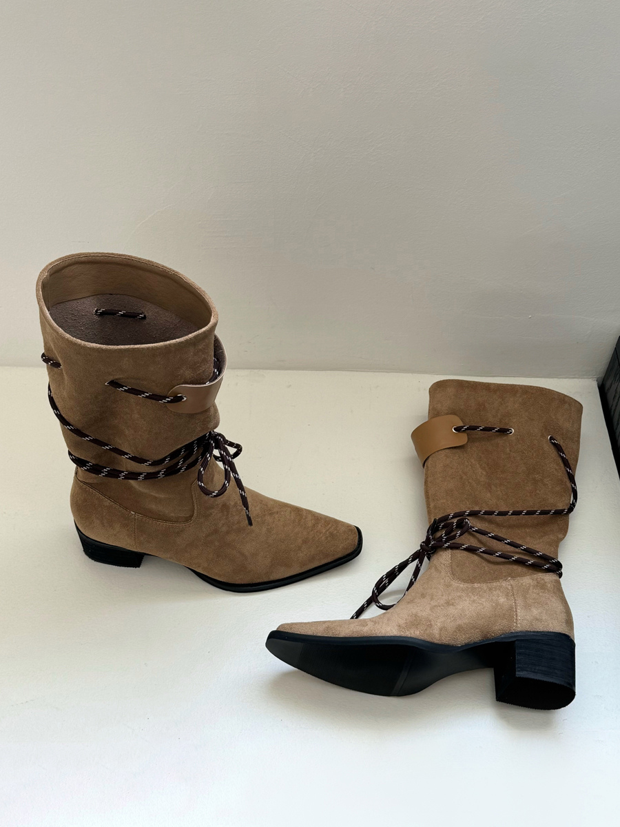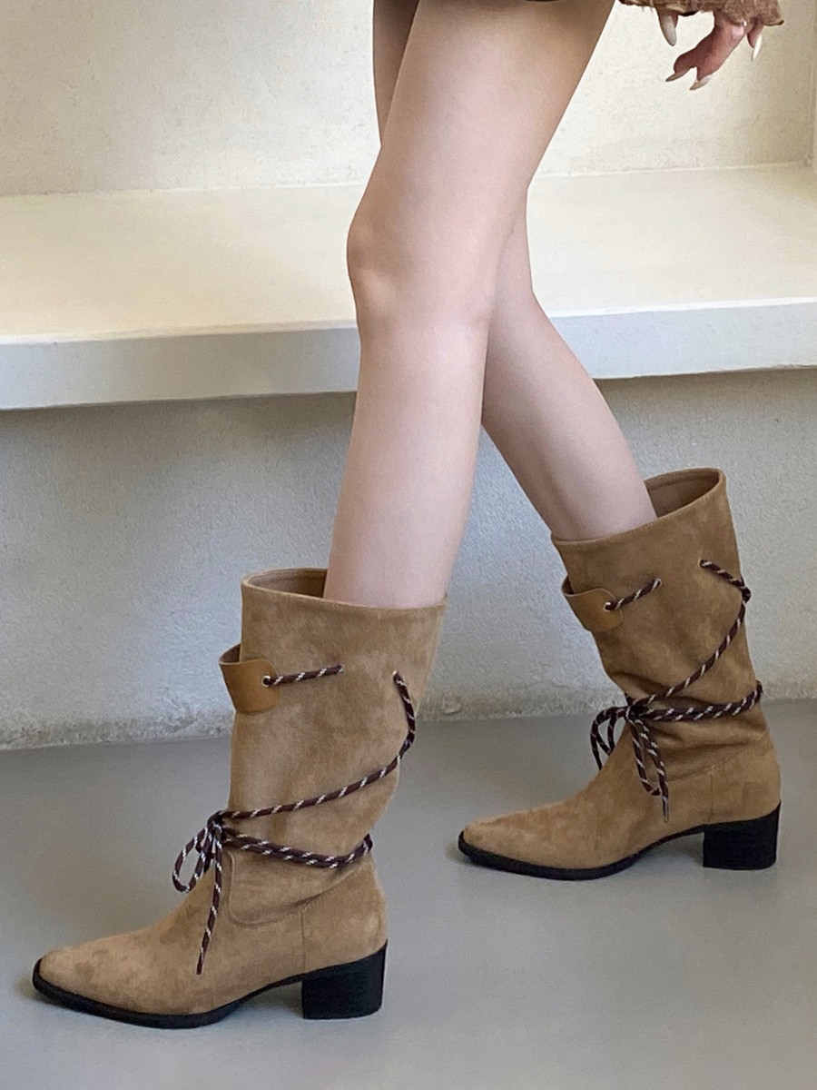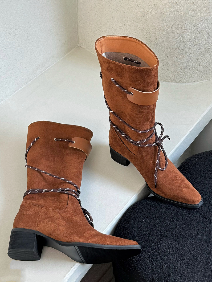 レディース アンクルブーツ スクエアトゥ チャンキーヒール レースアップ ブーティ
