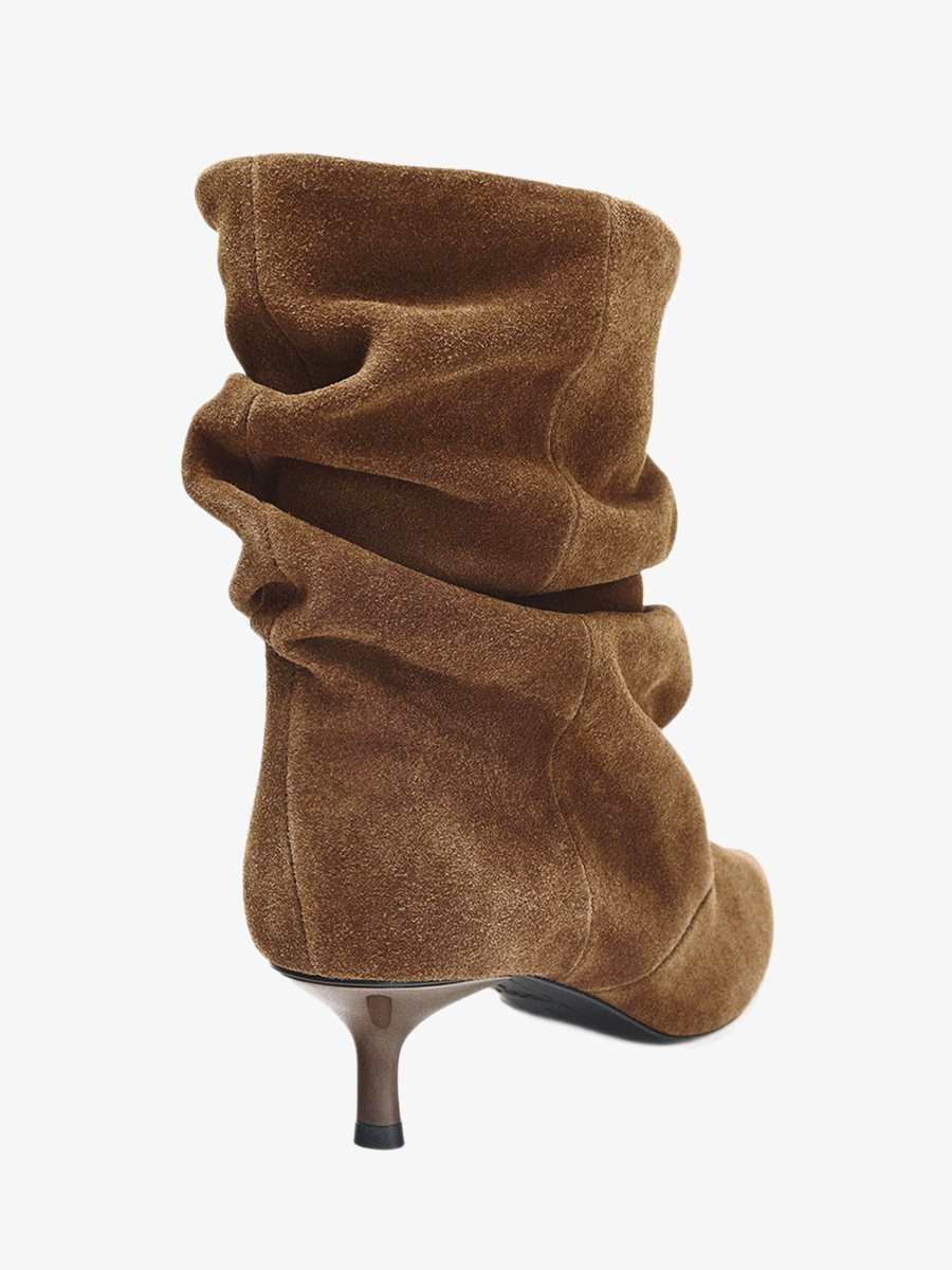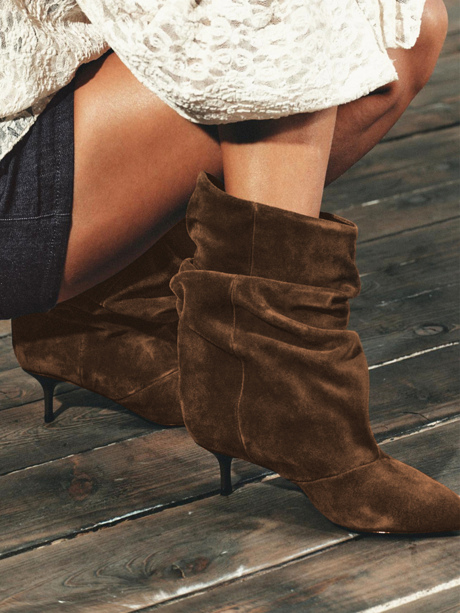 スエードアンクルブーツ ポインテッドトゥ キトンヒール スラウチブーティ